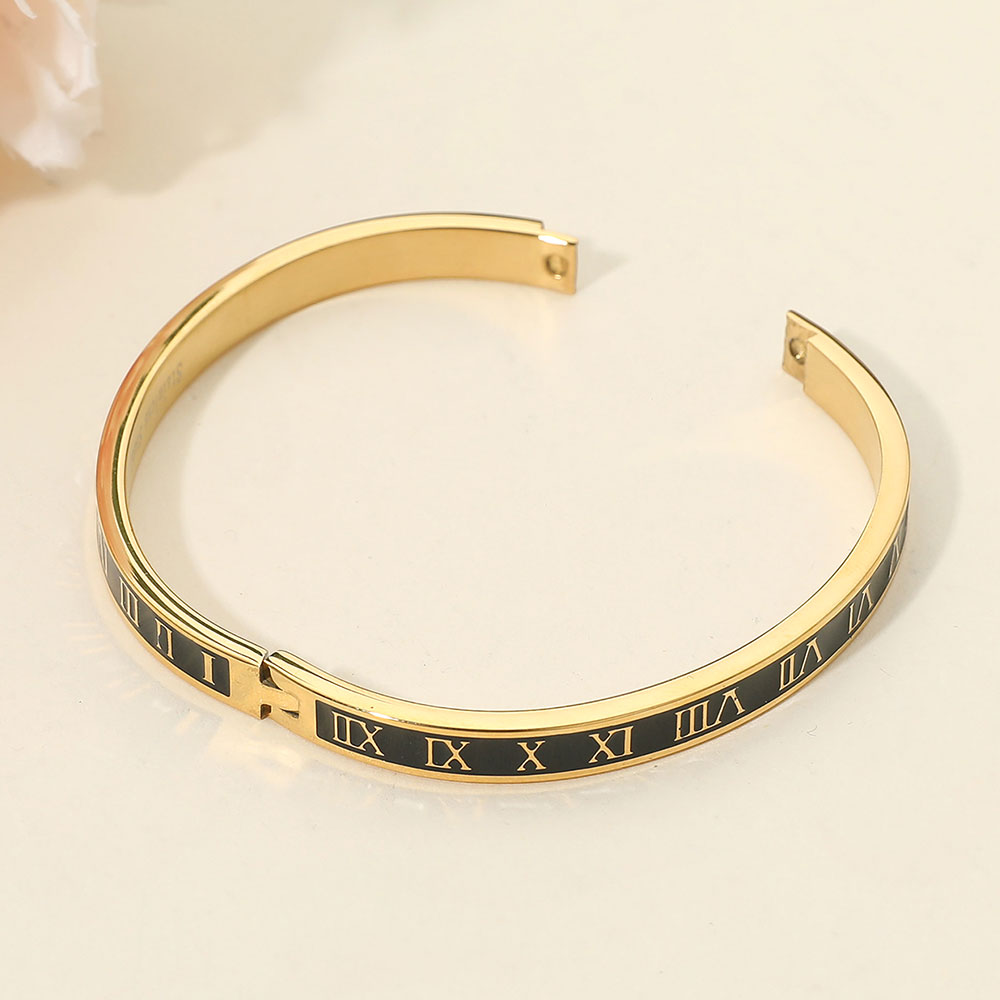 Stainless Steel Enamel Inlay Roman Numeral Hinged Bangle Bracelet