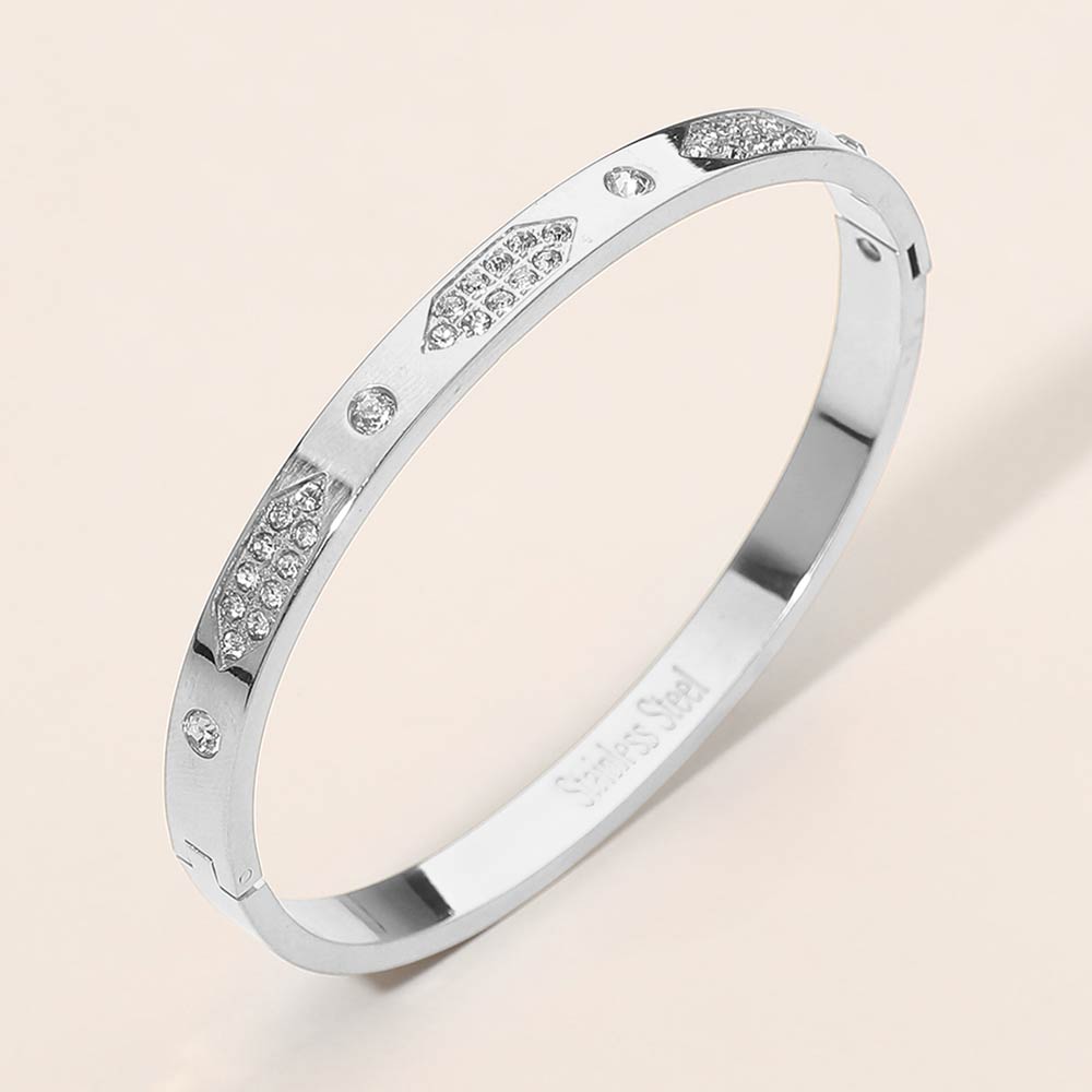 Stainless Steel Geometric CZ Detail Hinged Bangle Bracelet Stainless Steel Geometric CZ Detail Hinged Bangle Bracelet Stainless Steel Geometric CZ Detail Hinged Bangle Bracelet Stainless Steel Geometric CZ Detail Hinged Bangle Bracelet