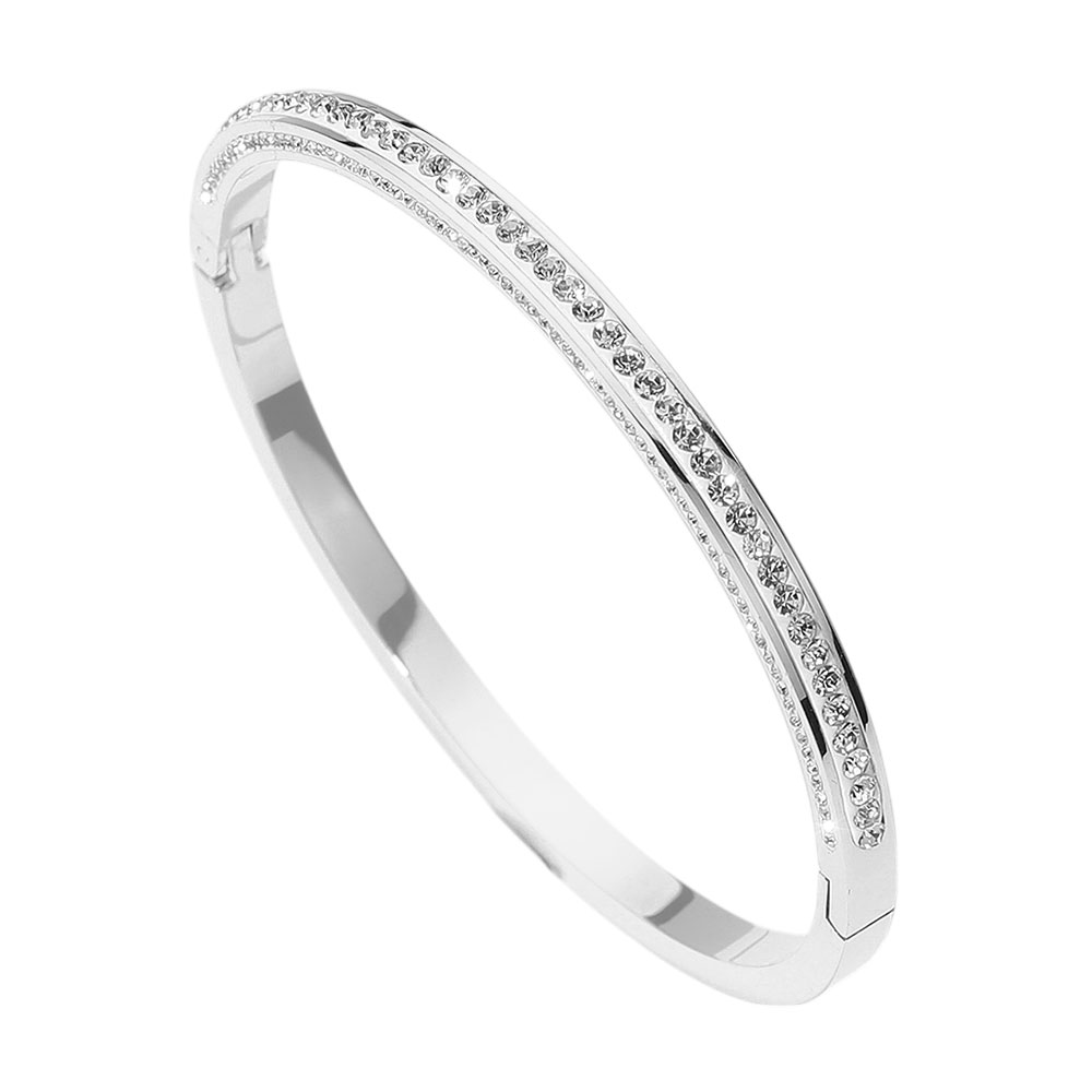 Stainless Steel Stone Paved Hinged Bangle Bracelet