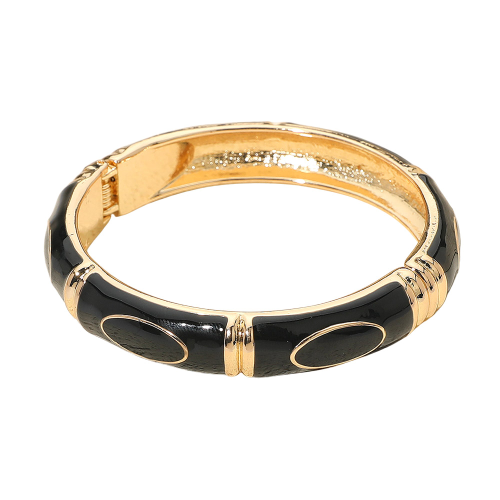 Details • Size : 0.4" H, 2.4" D • Hinged Closure • Elegant enamel bangle bracelet featuring smooth oval accents and a polished hinged design. A timeless statement accessory that adds refined charm to any outfit. Perfect for formal, casual, or workwear styling with a sleek and sophisticated finish. • Lead and Nickel Compliant