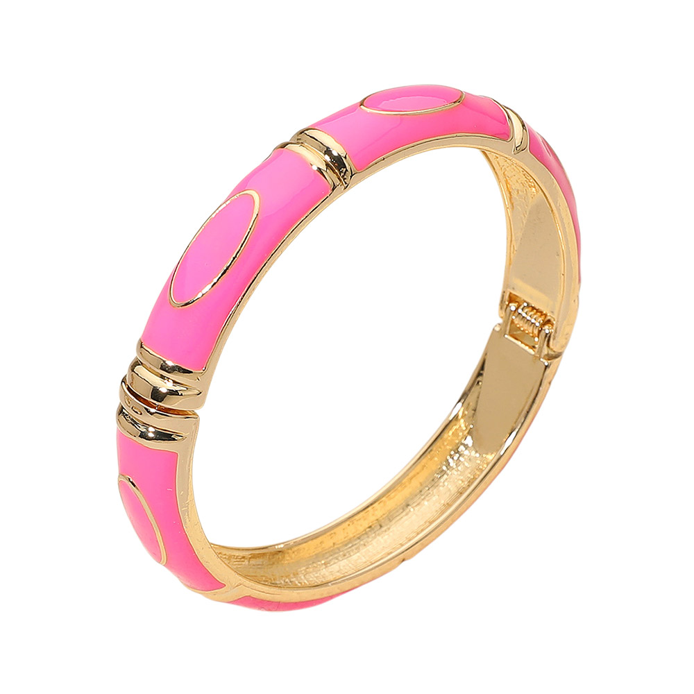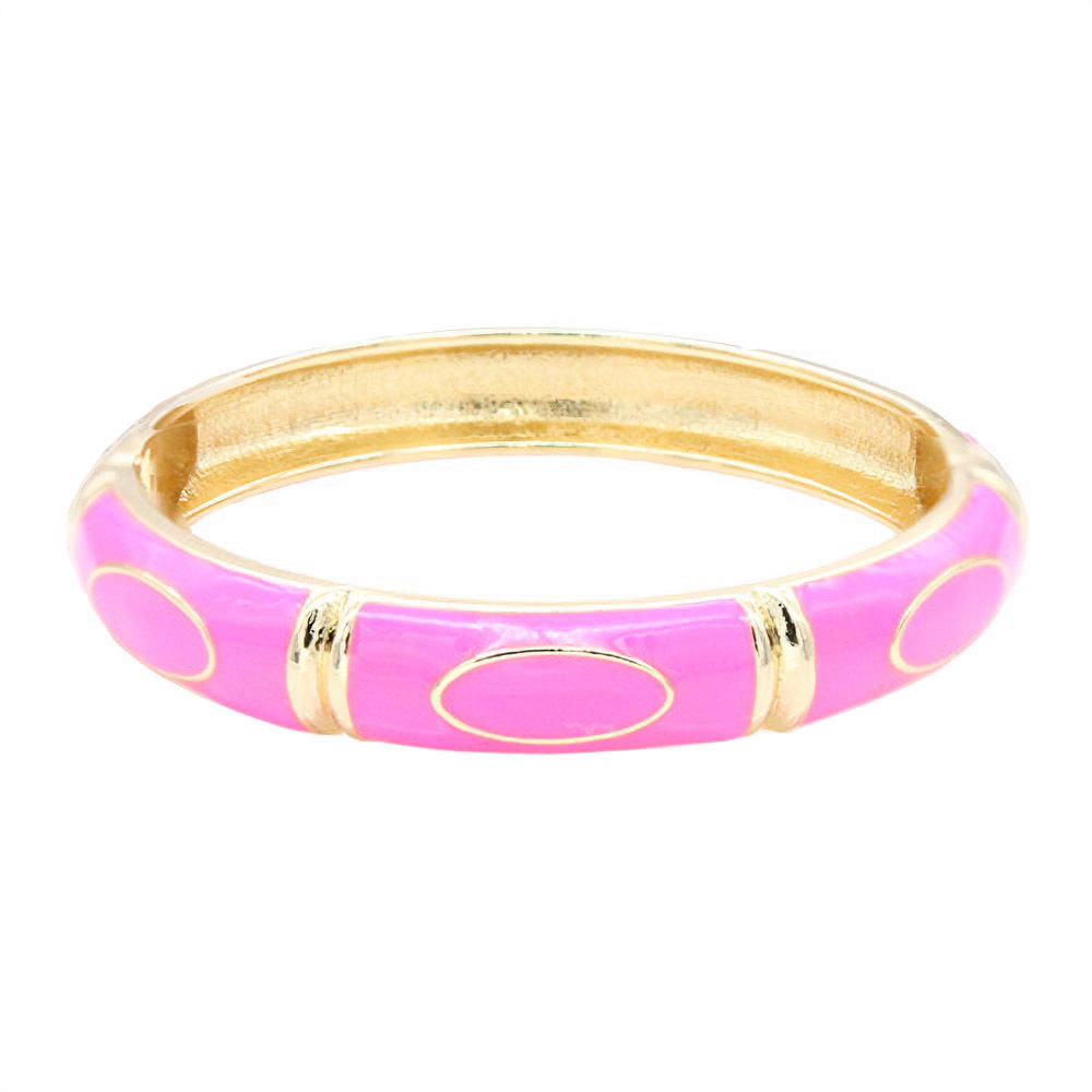 Details • Size : 0.4" H, 2.4" D • Hinged Closure • Elegant enamel bangle bracelet featuring smooth oval accents and a polished hinged design. A timeless statement accessory that adds refined charm to any outfit. Perfect for formal, casual, or workwear styling with a sleek and sophisticated finish. • Lead and Nickel Compliant