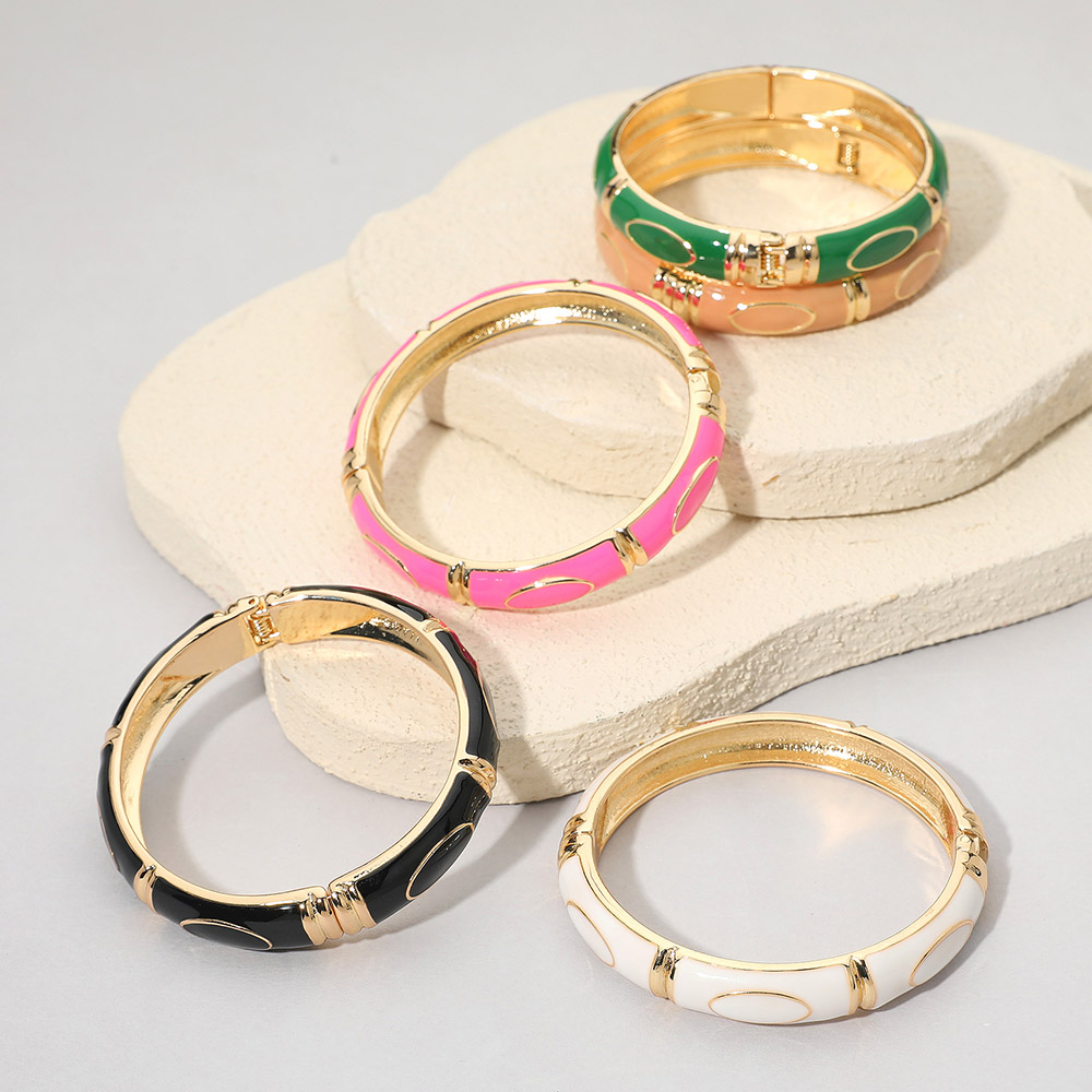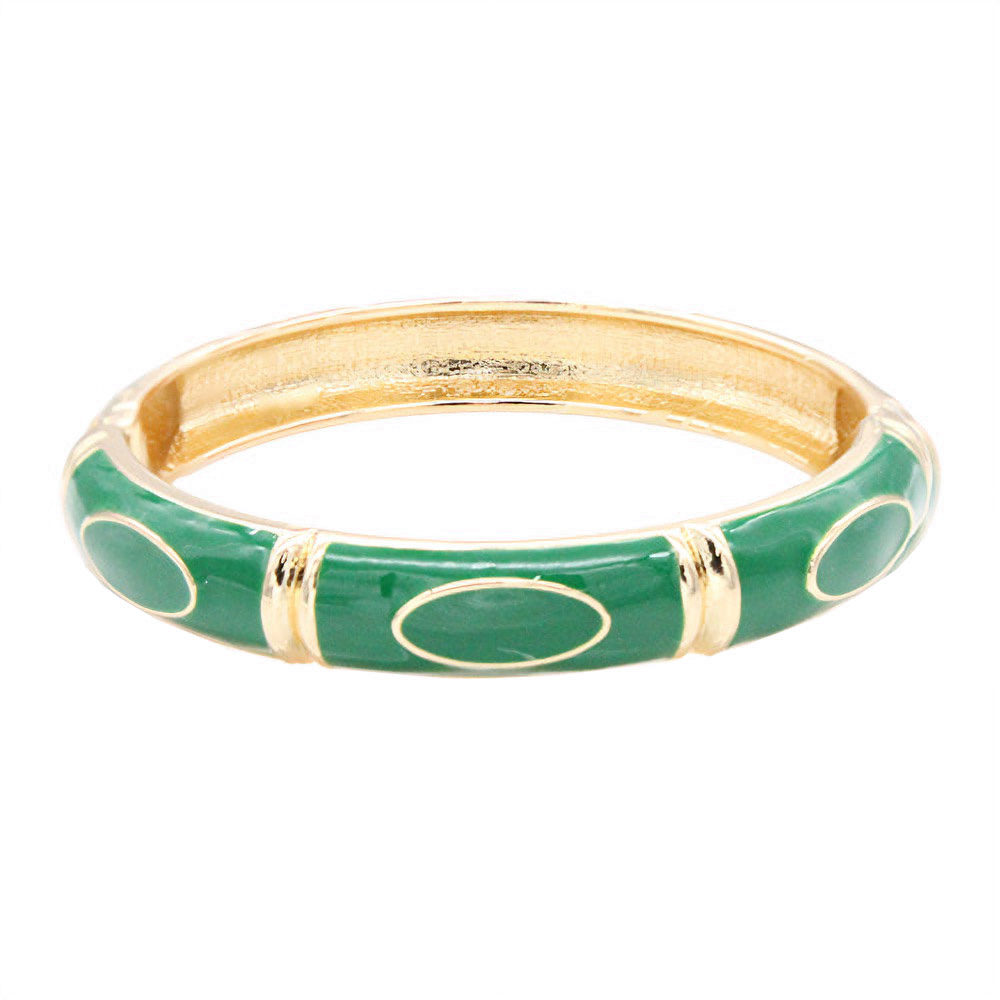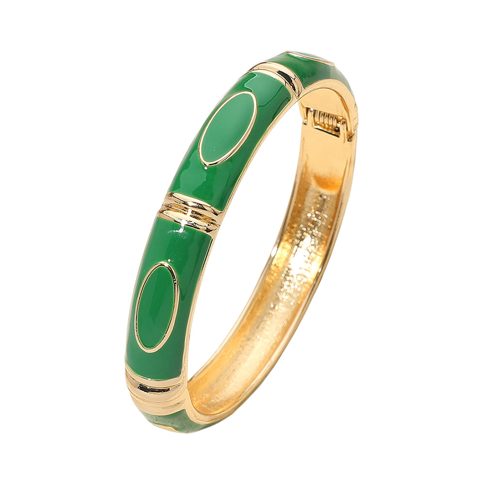 Details • Size : 0.4" H, 2.4" D • Hinged Closure • Elegant enamel bangle bracelet featuring smooth oval accents and a polished hinged design. A timeless statement accessory that adds refined charm to any outfit. Perfect for formal, casual, or workwear styling with a sleek and sophisticated finish. • Lead and Nickel Compliant