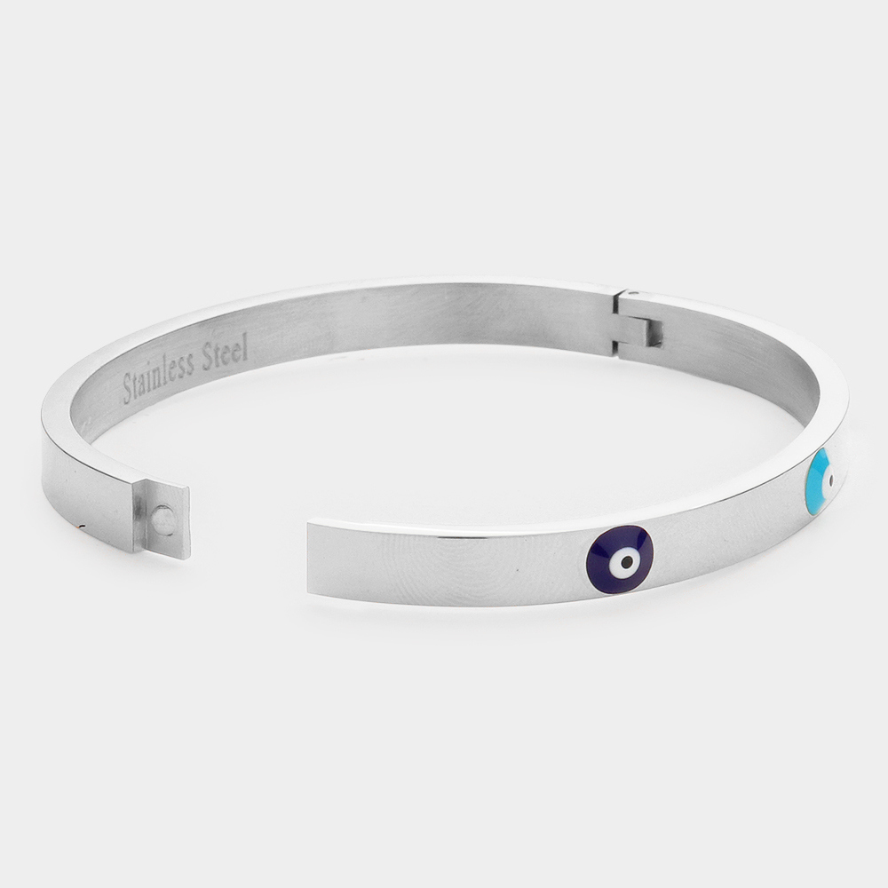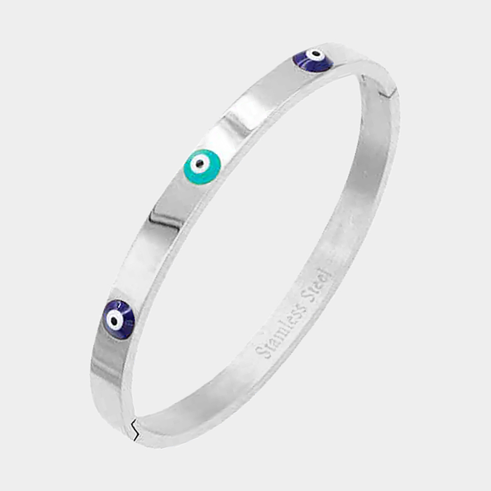 Triple Evil Eye Stainless Steel Bangle Bracelet