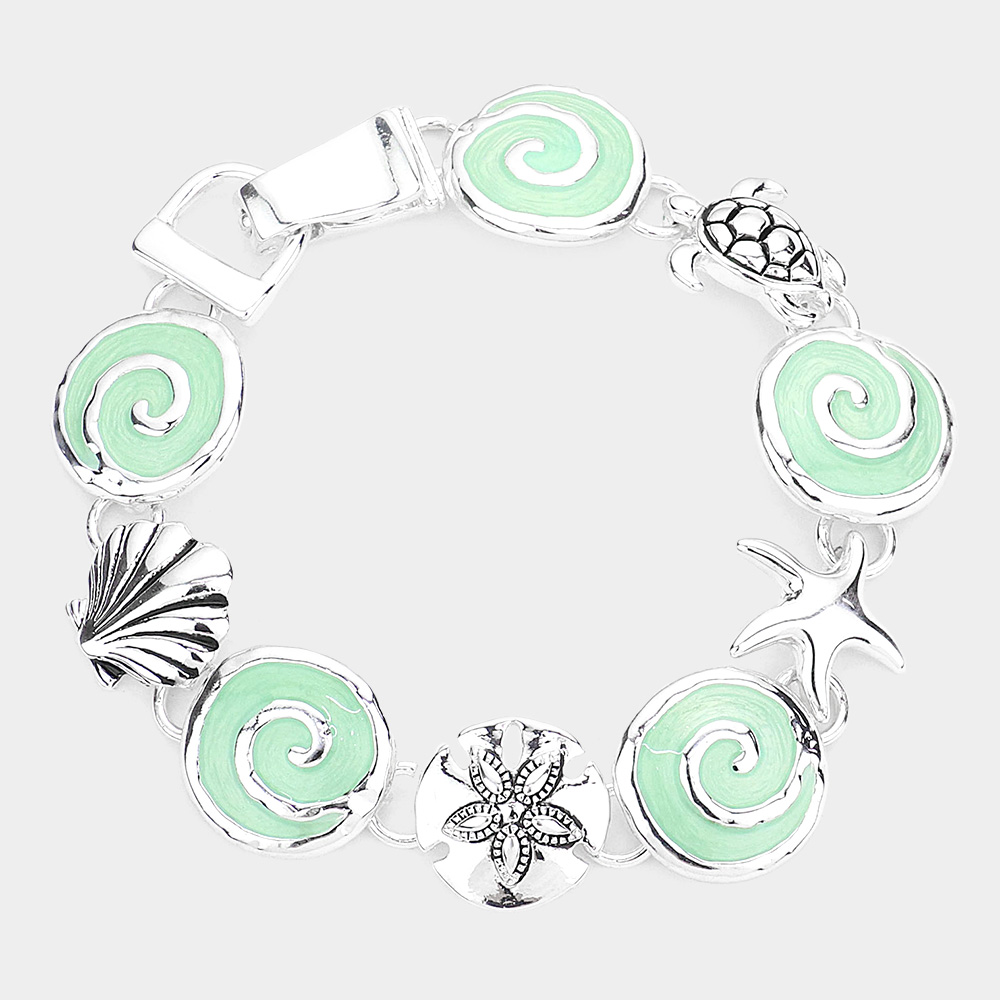Antique Metal Shell Starfish Enamel Sand Dollar and Turtle Link Magnetic Bracelet