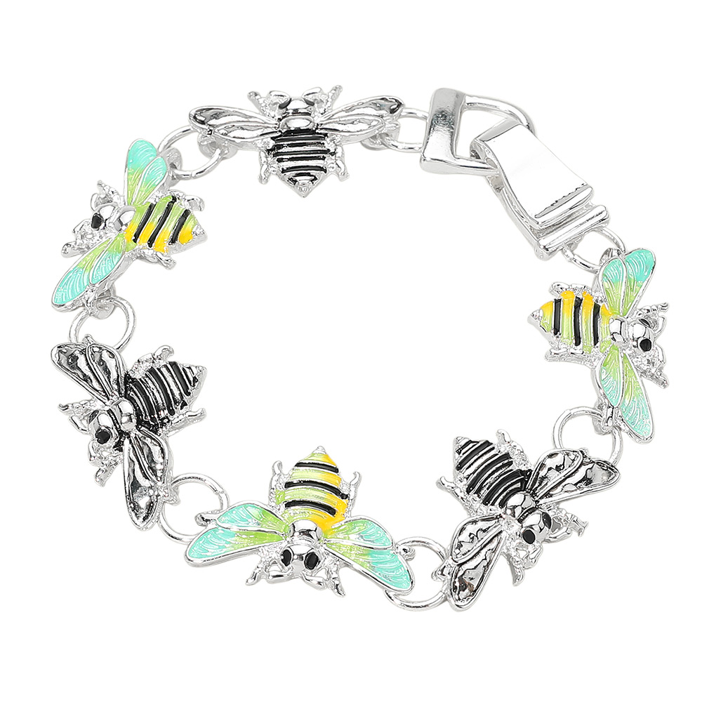 • Whimsical bee charm bracelet designed with detailed insect accents and an easy magnetic clasp for effortless wear. This playful yet stylish piece adds character to everyday looks, gift assortments, and seasonal collections, making it a charming accessory choice for nature-inspired fashion displays.