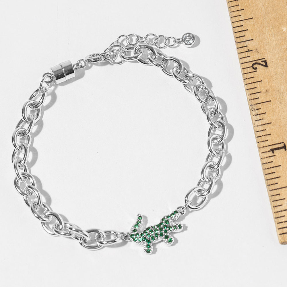 Gold Dipped CZ Pave Alligator Charm Link Chain Magnetic Bracelet