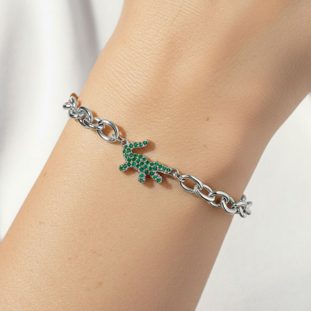 • This alligator charm chain bracelet features a bold animal inspired accent paired with a convenient magnetic clasp for easy wear. Designed to stand out while remaining versatile, it works well for everyday styling or statement layering. A strong addition to boutique assortments, themed collections, and gift focused displays that attract customers looking for playful yet stylish accessories.