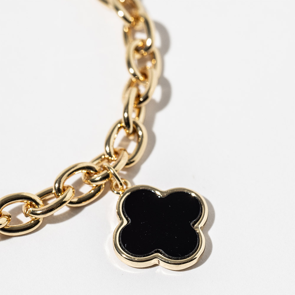 Details • Size : 0.25" H, 7" + 1" L • Charm Size : 0.6" X 0.6" • Magnetic Clasp Closure • Elevate your everyday style with this charming link bracelet featuring a delicate quatrefoil drop accent and an easy magnetic closure for effortless wear. Its polished shine and elegant silhouette make it perfect for stacking, gifting, or adding a touch of refinement to any look. Ideal for casual or dressy outfits. • Gold Dipped • Lead and Nickel Compliant • Made In Korea