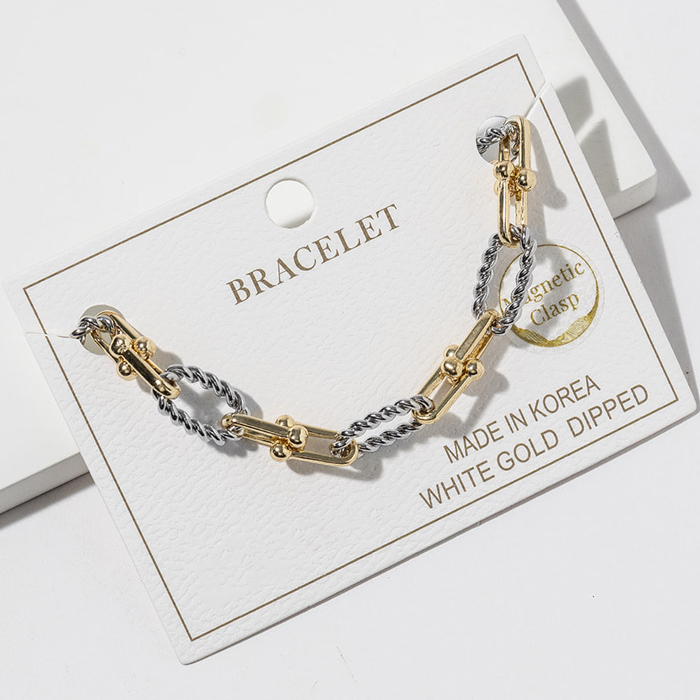 Details • Size : 0.3" H, 8" + 1" L • Magnetic Closure • Modern link bracelet designed with a convenient magnetic clasp for quick, secure wear. A clean, versatile style that works effortlessly for daily outfits or layered bracelet looks. Ideal for gifting, boutique collections, and customers who value both style and ease of use. • Gold Dipped • Lead and Nickel Compliant • Made In Korea