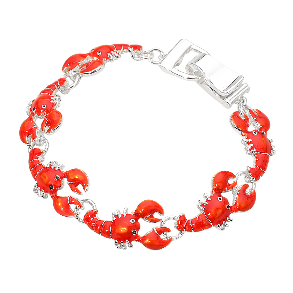 Details • Size : 0.5" H, 7" + 0.5" L • Magnetic Closure • Fun lobster charm bracelet designed with detailed linked accents for a bold, whimsical statement. Perfect for beach shops, summer styling, resort collections, and novelty jewelry assortments, this bracelet adds personality, movement, and eye-catching appeal to everyday and seasonal looks. • Lead and Nickel Compliant