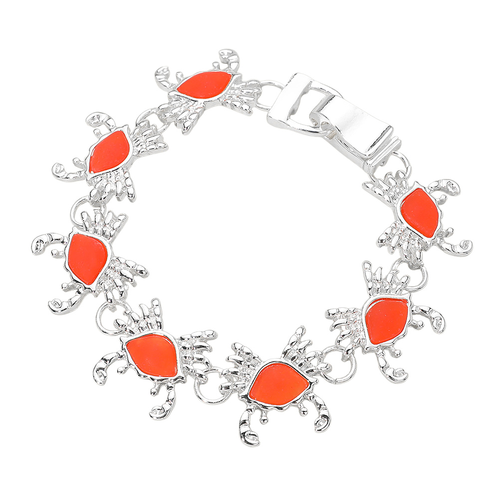 Details • Size : 0.75" H, 7" + 0.5" L • Magnetic Closure • Playful crab charm bracelet featuring linked ocean-inspired motifs and an easy magnetic closure for quick wear. Ideal for beach themes, summer assortments, and novelty jewelry displays, this bracelet adds a fun coastal accent to everyday outfits and seasonal collections. • Lead and Nickel Compliant