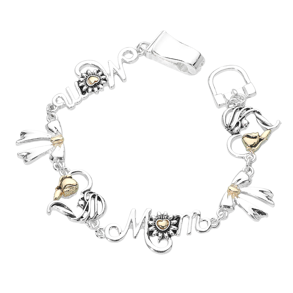 Details • Size : 0.75" H, 7.5" + 0.75" L • Magnetic Closure • This mom charm bracelet features meaningful symbols and decorative lettering that celebrate love, family, and appreciation. Designed as a heartfelt accessory, it’s ideal for gift shops, seasonal promotions, or everyday jewelry collections that focus on sentimental and message-driven styles. • Lead and Nickel Compliant