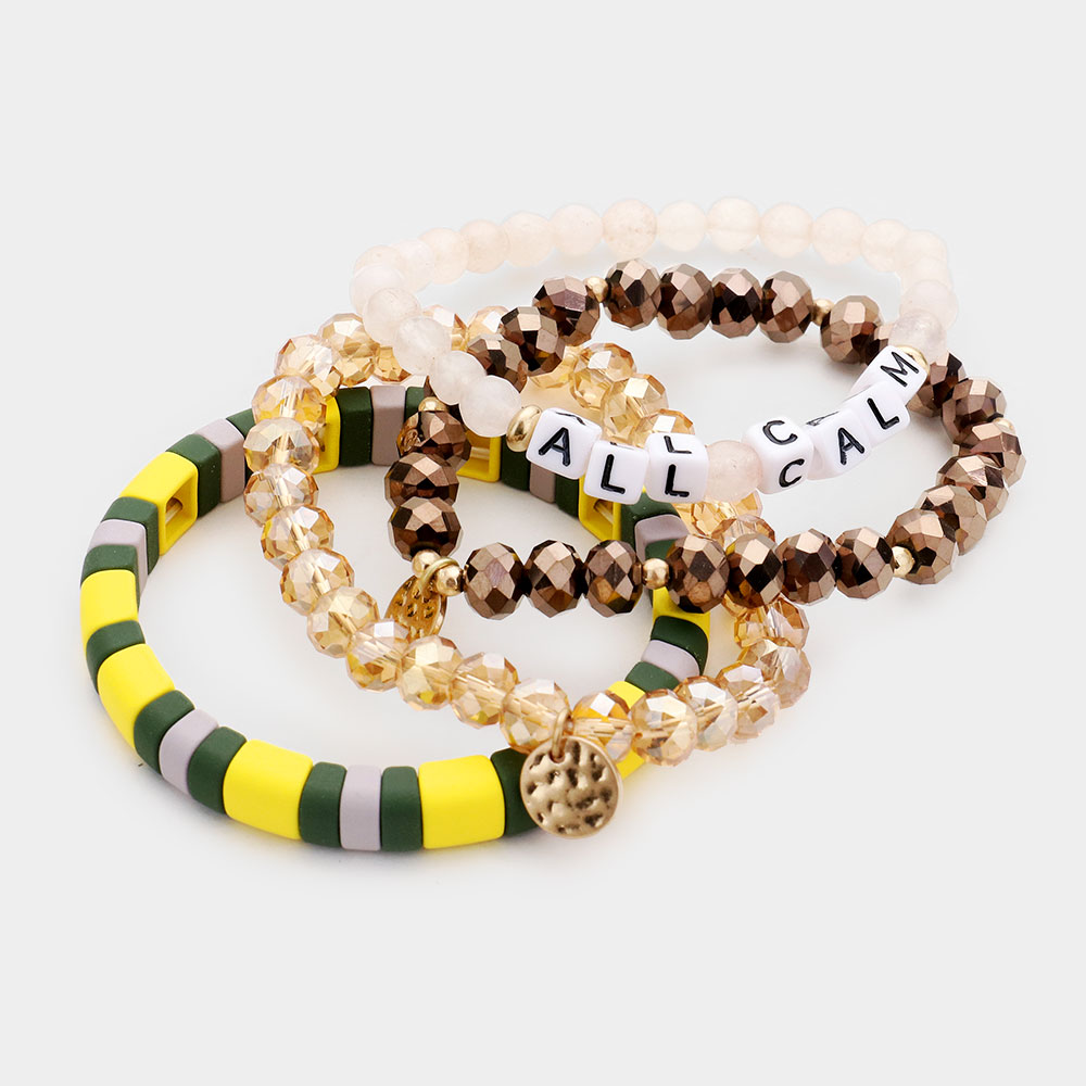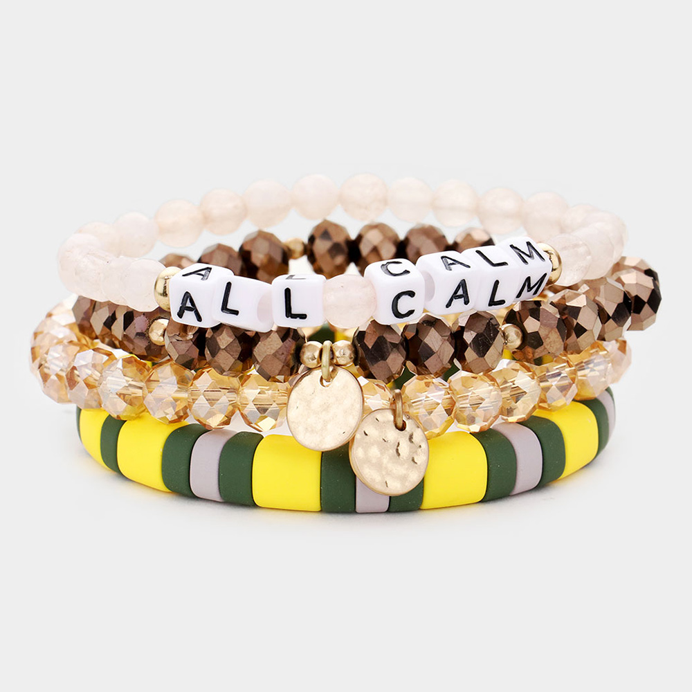 4PCS - ALL CALM Natural Stone Metal Disc Charm Layered Bracelets