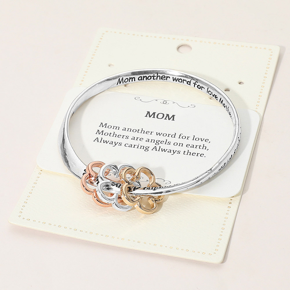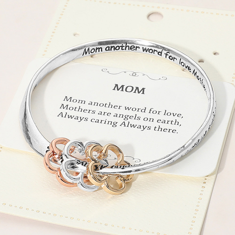 Details • Size : 0.5" H, 2.5" D • Showcase heartfelt sentiment with this mom love message bracelet featuring engraved words of care and devotion paired with decorative link accents. A meaningful accessory for celebrating motherhood, honoring special bonds, and gifting on occasions filled with gratitude and lasting appreciation. • Lead and Nickel Compliant