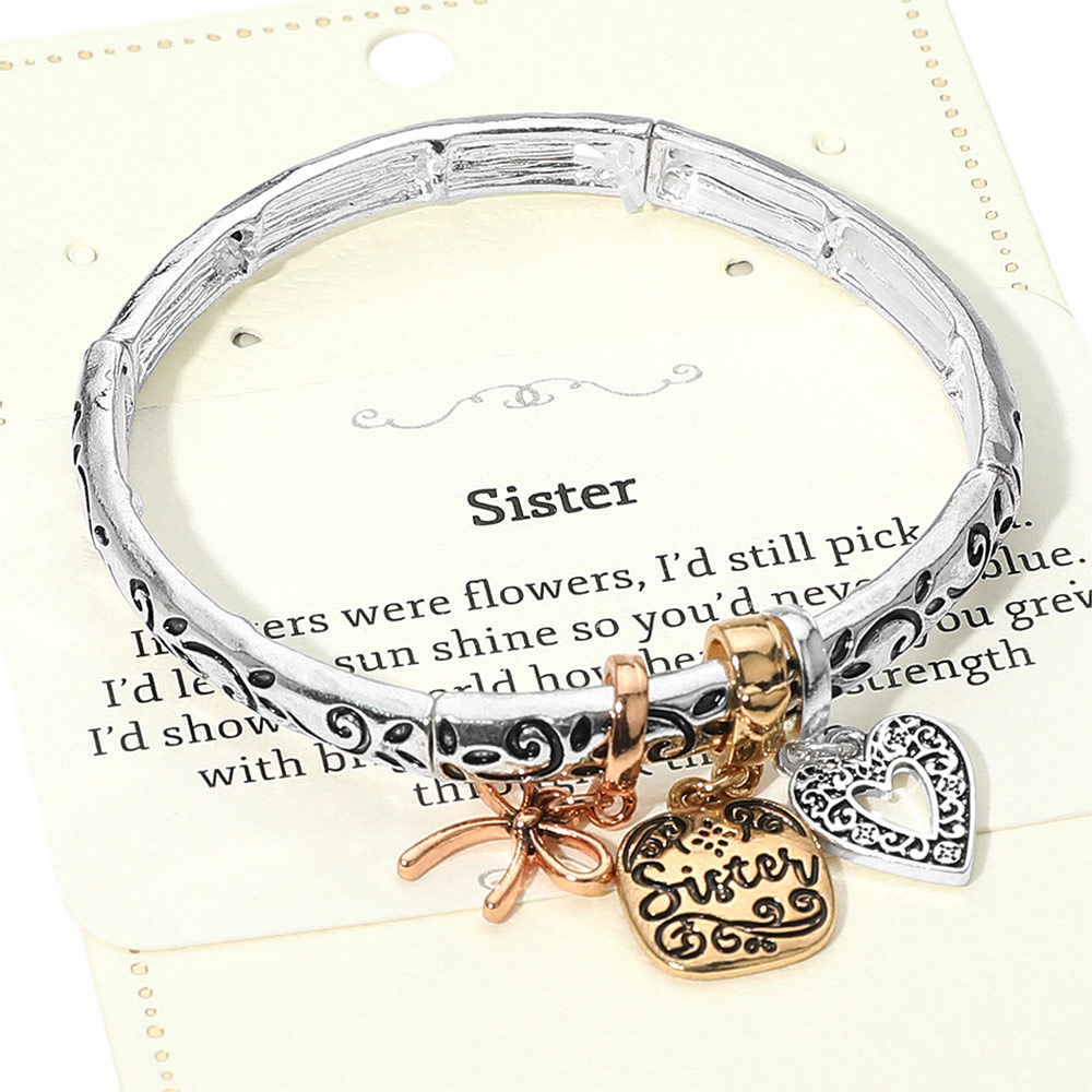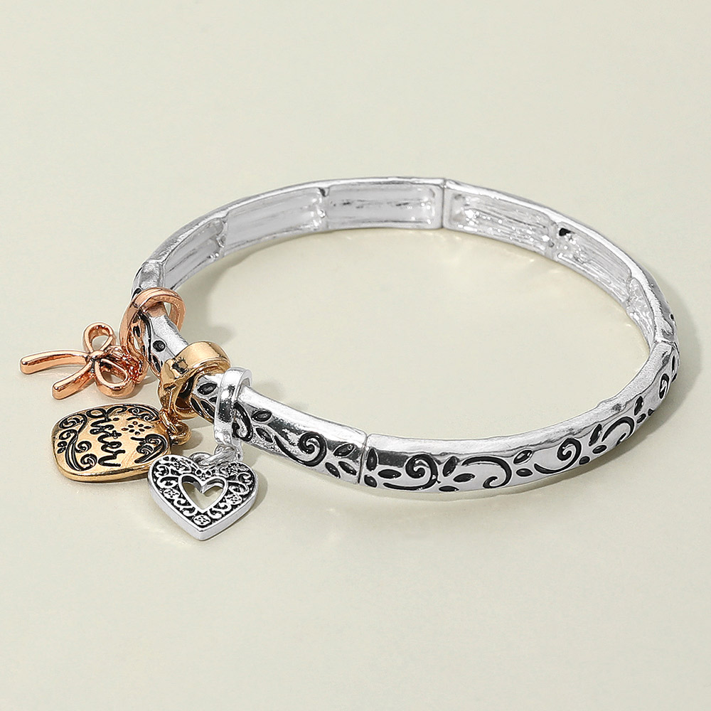 Sister Message Bow Heart Charm Stretch Bracelet Sister Message Bow Heart Charm Stretch Bracelet Sister Message Bow Heart Charm Stretch Bracelet Sister Message Bow Heart Charm Stretch Bracelet