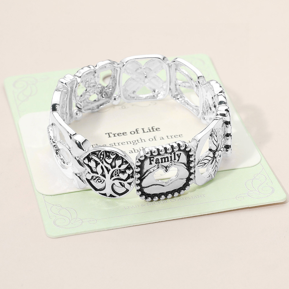 Details • Size : 0.8" H • Stretchable • Celebrate connection and strength with this Tree of Life family bracelet featuring symbolic engraved charms. Its flexible stretch design offers a comfortable fit, making it a meaningful accessory that expresses love, unity, and timeless inspiration for everyday wear. • Lead and Nickel Compliant