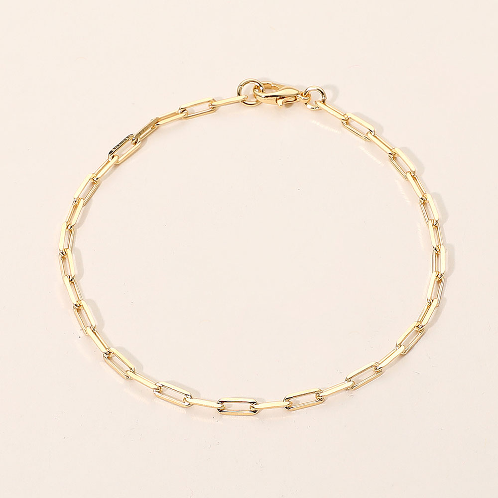 Details • Size : 0.1" H (3mm), 7.5" L • Elegant chain bracelet featuring a minimalist link design for timeless sophistication. Lightweight and versatile, it’s perfect for layering or wearing alone. Presented on a “one & only” card for effortless gifting and everyday elegance. • Lead and Nickel Compliant • Gold Filled • Made In Brazil