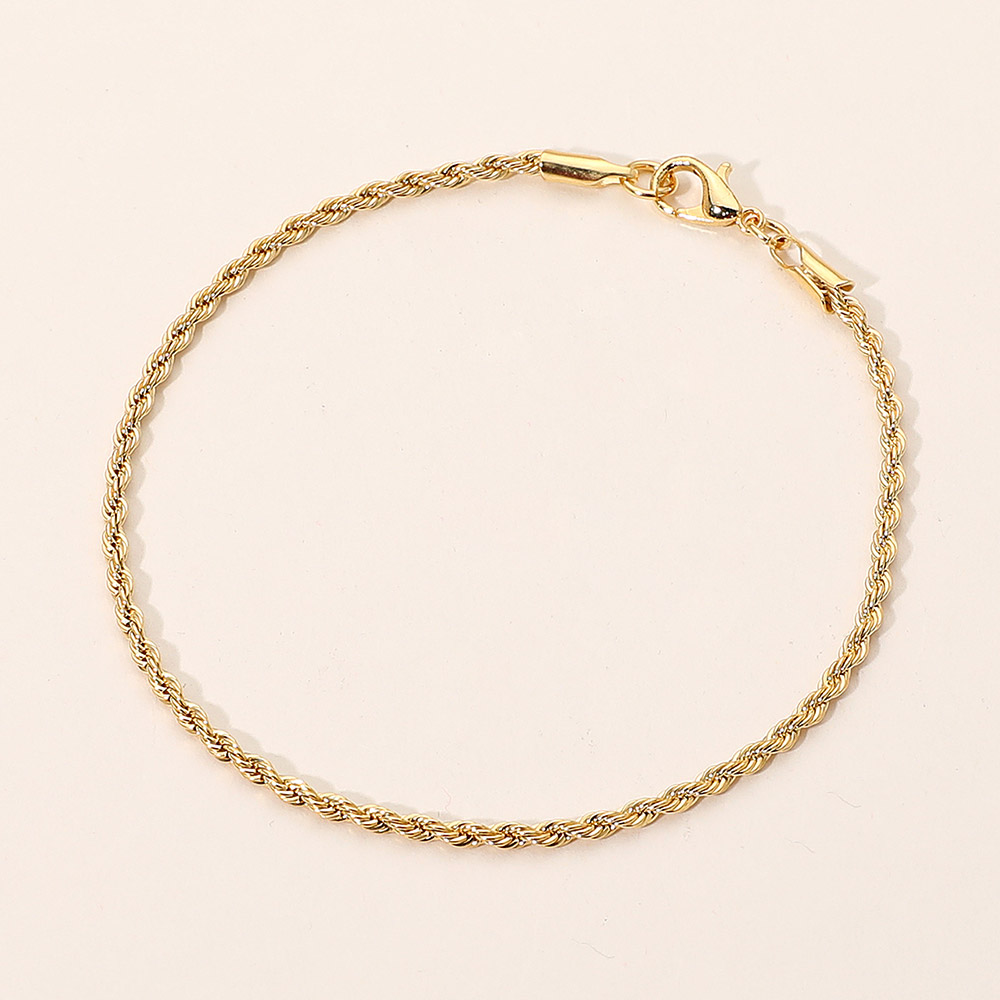 Details • Size : 0.1" H (2mm), 7.5" L • Lobster Clasp Closure • Refined rope chain bracelet showcasing a beautifully twisted pattern for a timeless look. Its intricate braided design adds sophistication and shine, perfect for layering or wearing solo. A chic, minimal accessory that elevates everyday or special occasion styles. • Lead and Nickel Compliant • Gold Filled • Made In Brazil