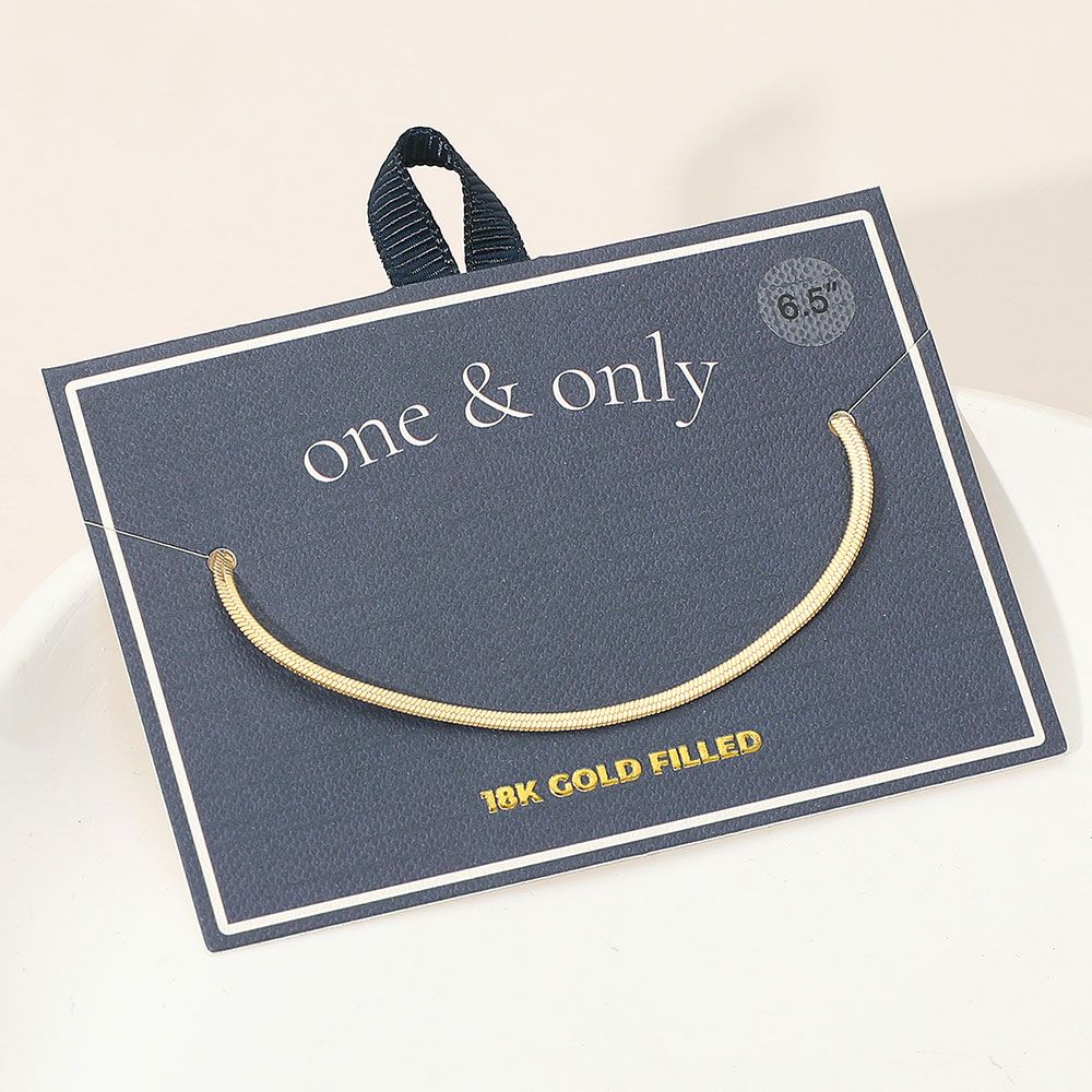 Details • Size : 0.1" H (2mm), 6.5" L • Lobster Clasp Closure • Elegant snake chain bracelet featuring a smooth, flexible design with a refined shine. Its sleek, minimalist look makes it perfect for layering or wearing alone. A timeless accessory that brings sophistication and modern elegance to any outfit or jewelry collection. • Gold Filled • Lead and Nickel Compliant • Made In Brazil