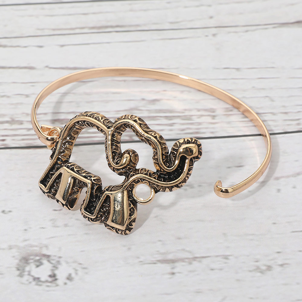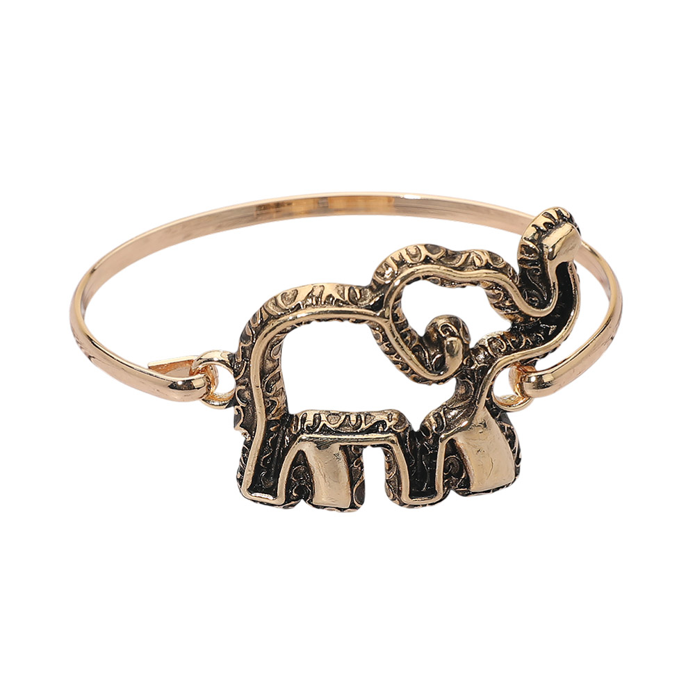 Details • Size : 1.3" H, 2.5" D • Hook Closure • This open bangle bracelet features a sculpted elephant charm symbolizing strength, wisdom, and good fortune. The smooth bangle silhouette offers easy wear and a comfortable fit, making it ideal for everyday styling or meaningful gifting. A distinctive statement piece for boutiques seeking symbolic, trend-forward jewelry with lasting appeal and broad customer appeal. • Lead and Nickel Compliant