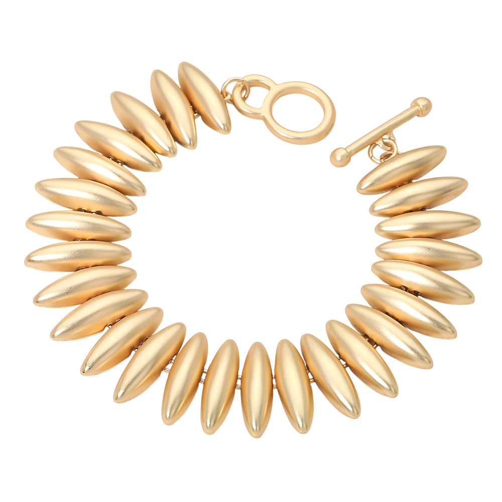 • This sleek oval bead bracelet features a bold, sculpted silhouette with smooth elongated beads and a modern toggle closure. Designed to make a statement while remaining versatile, it pairs effortlessly with casual outfits or elevated looks, offering a refined accessory for everyday wear, layering, gifting, or special occasions.