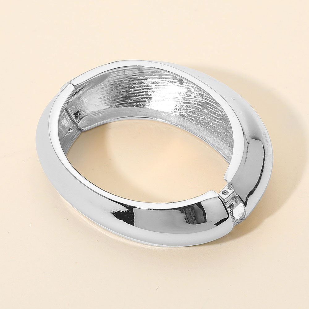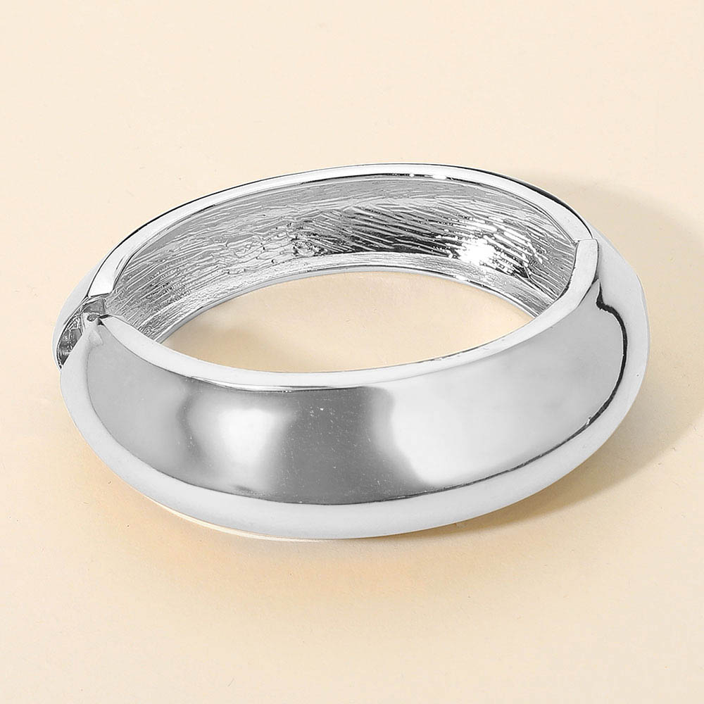 Details • Size : 1.25" H, 2.3" D • Hinged Closure • Chic dome-style cuff bracelet featuring a smooth, high-shine finish and bold rounded shape. Designed for effortless elegance, this statement piece adds a touch of sophistication to any outfit, perfect for both casual wear and formal occasions. • Lead and Nickel Compliant