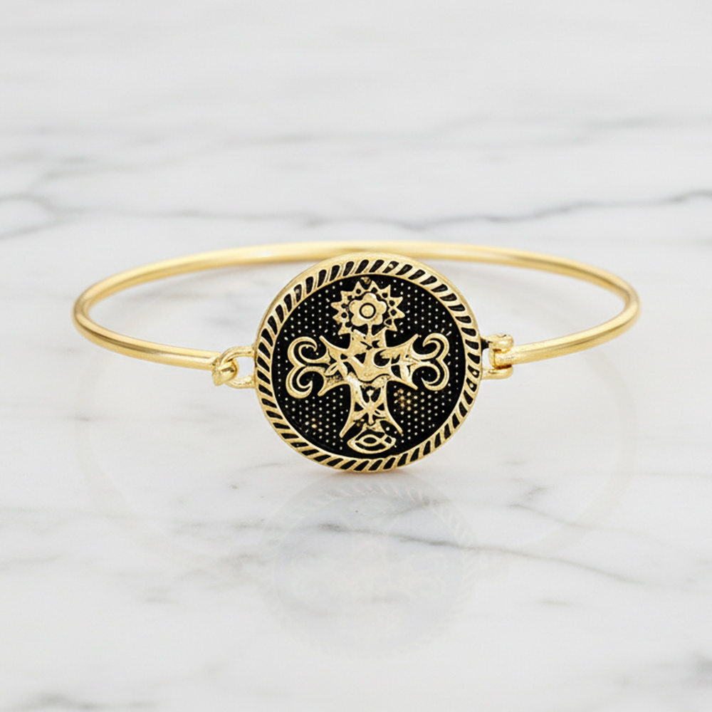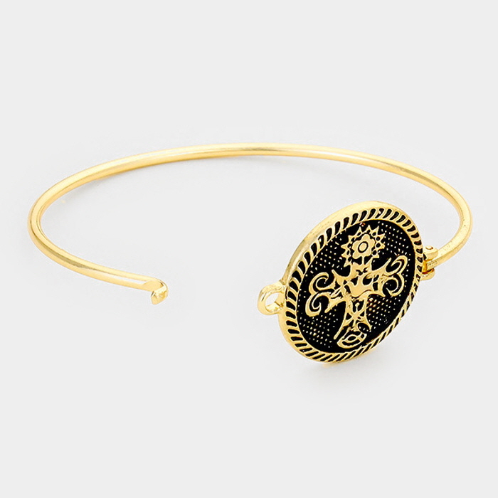 CZ Stone Paved Cross Pointed Two Tone Split Cuff Bracelet