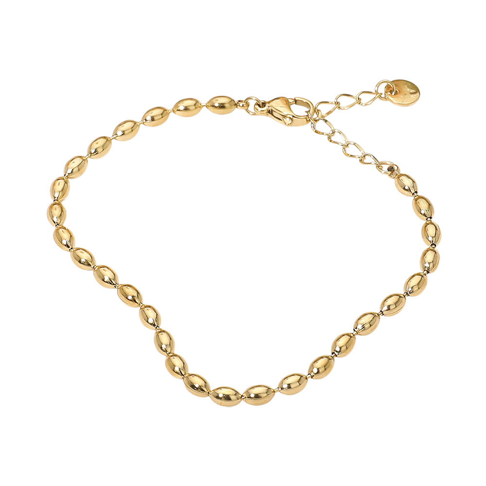 Details • Size : 0.2" H, 6.75" + 1.5" L • Lobster Clasp Closure • Water Resistant • This elegant beaded chain bracelet features a delicate series of polished oval beads linked together for a timeless look. Its lightweight and versatile style makes it perfect for layering or wearing solo, adding a touch of sophistication to both casual and refined outfits. • Stainless Steel