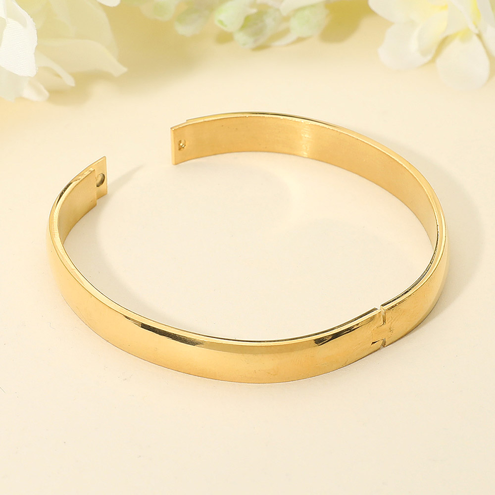 Details • Size : 0.3" H, 2.5" D • Hinged Closure • This stainless steel bangle showcases a minimalist, high-polish finish that exudes timeless sophistication. Its sleek, seamless design offers effortless versatility, perfect for elevating both casual and formal looks with understated elegance and lasting, refined modern appeal. • Stainless Steel