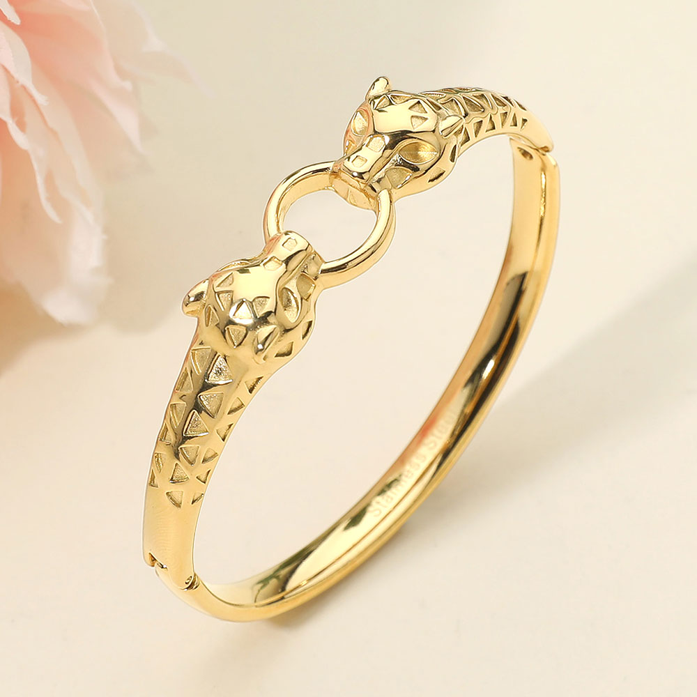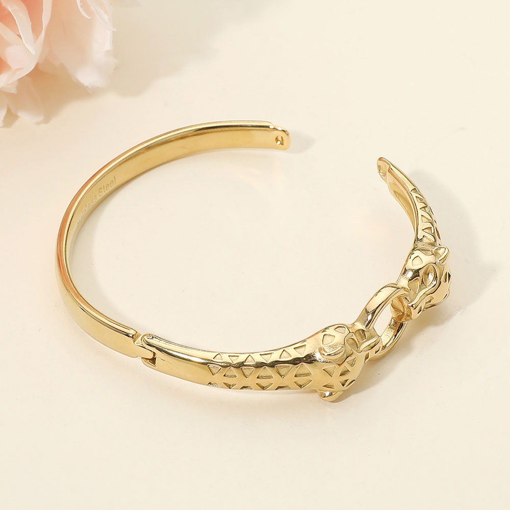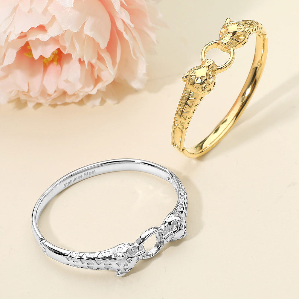 Stainless Steel Leopard Head Link Hinged Bangle Bracelet
