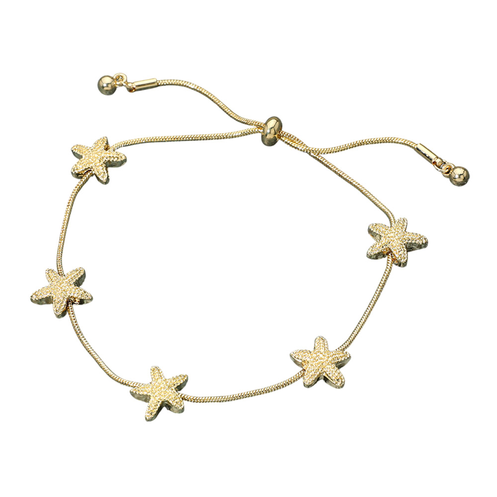 • This starfish adjustable slider bracelet features evenly spaced starfish charms along a smooth adjustable chain for a secure, customized fit. Designed for easy styling, it works well for beach-themed collections, summer accessories, coastal gifting, and everyday wear with a subtle ocean-inspired look.