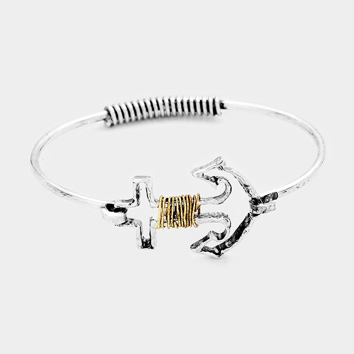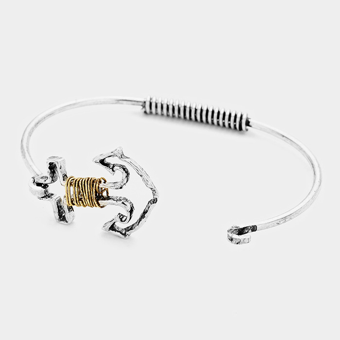Rectangle Natural Stone Accented Burnished Metal Cuff Bracelet