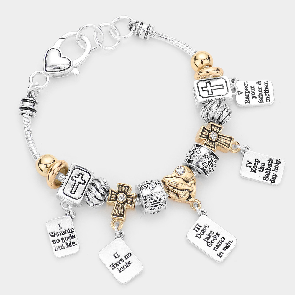 10 Commandments Heart Cross Bible Multi Bead Bracelet