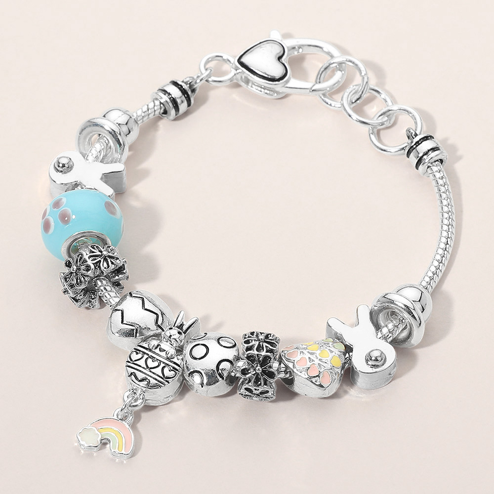 Metal Easter Bunny Enamel Egg Rainbow Multi Bead Charm Bracelet
