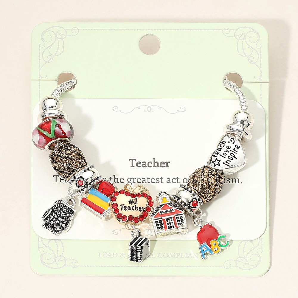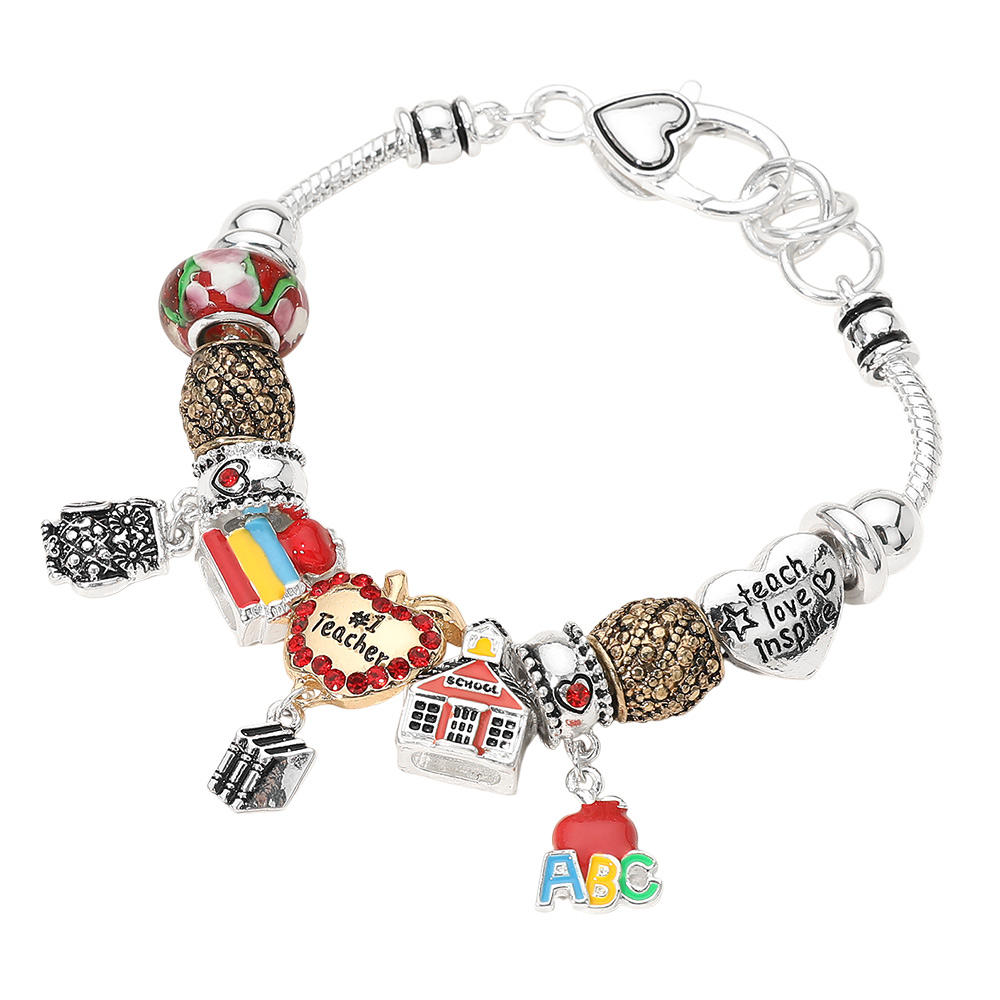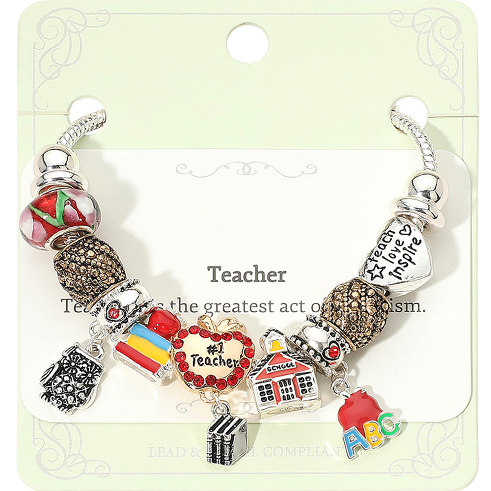 Details • Size : 1.2" H, 7" + 1" L • Lobster Clasp Closure • This teacher-themed charm bracelet features playful school-inspired accents and meaningful symbols that celebrate education and inspiration. Designed to tell a story with layered charms and texture, it’s ideal for boutiques offering thoughtful gifts, appreciation styles, and accessories that honor educators in a memorable way. • Lead and Nickel Compliant