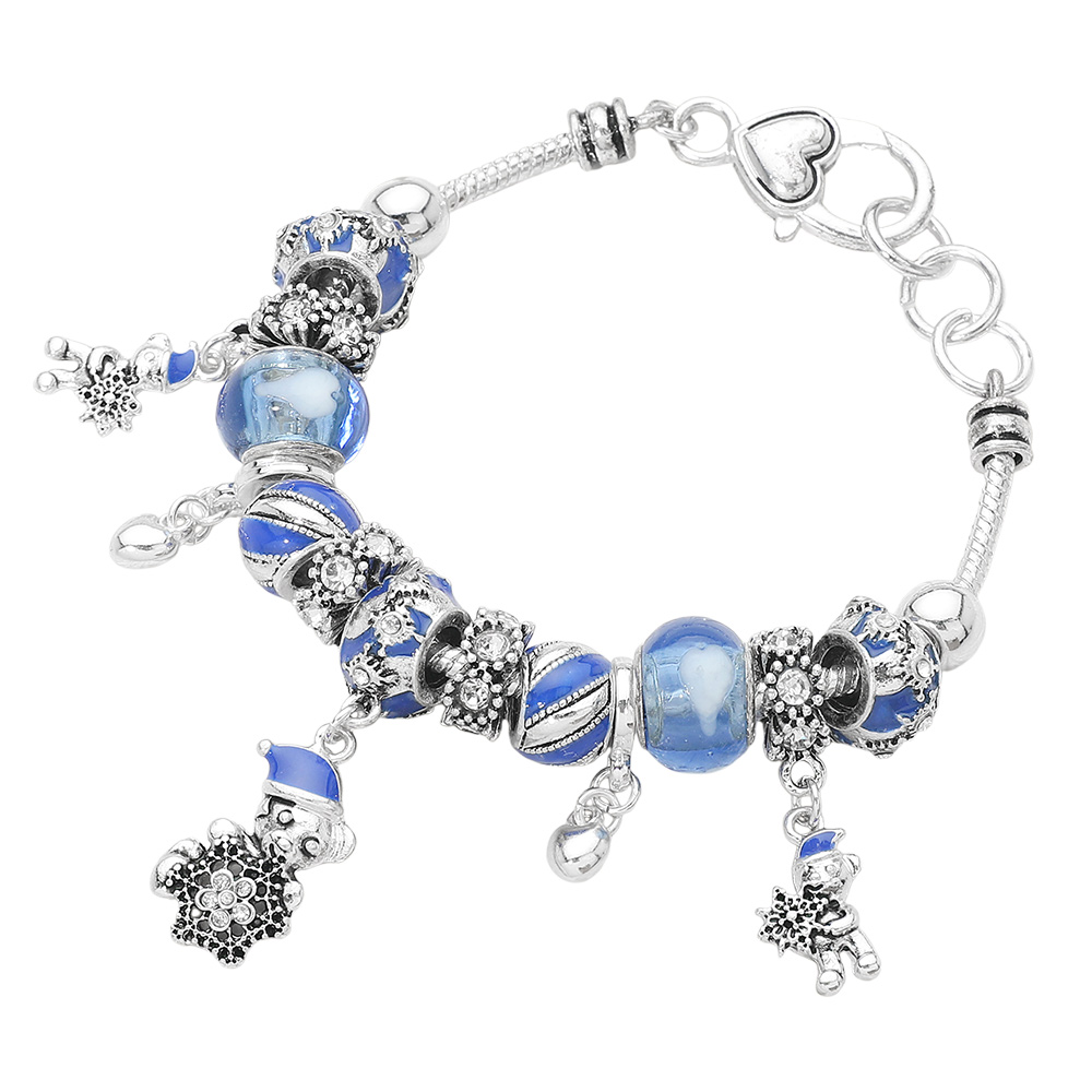 Snowflake Bear Charm Multi Beaded Bracelet