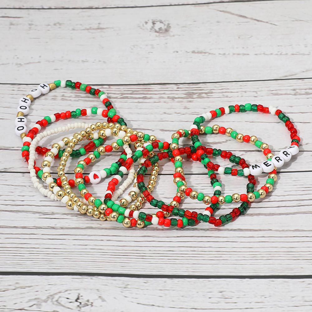 Details • Size : 1.75" H • Stretchable • Set of 10 holiday-inspired stretch bead bracelets with letter accents spelling festive words. Great for seasonal gifts, party favors, and Christmas displays. Easy to mix, match, and layer. • Lead and Nickel Compliant