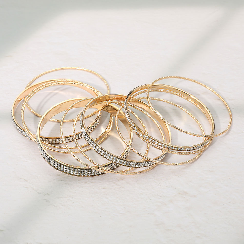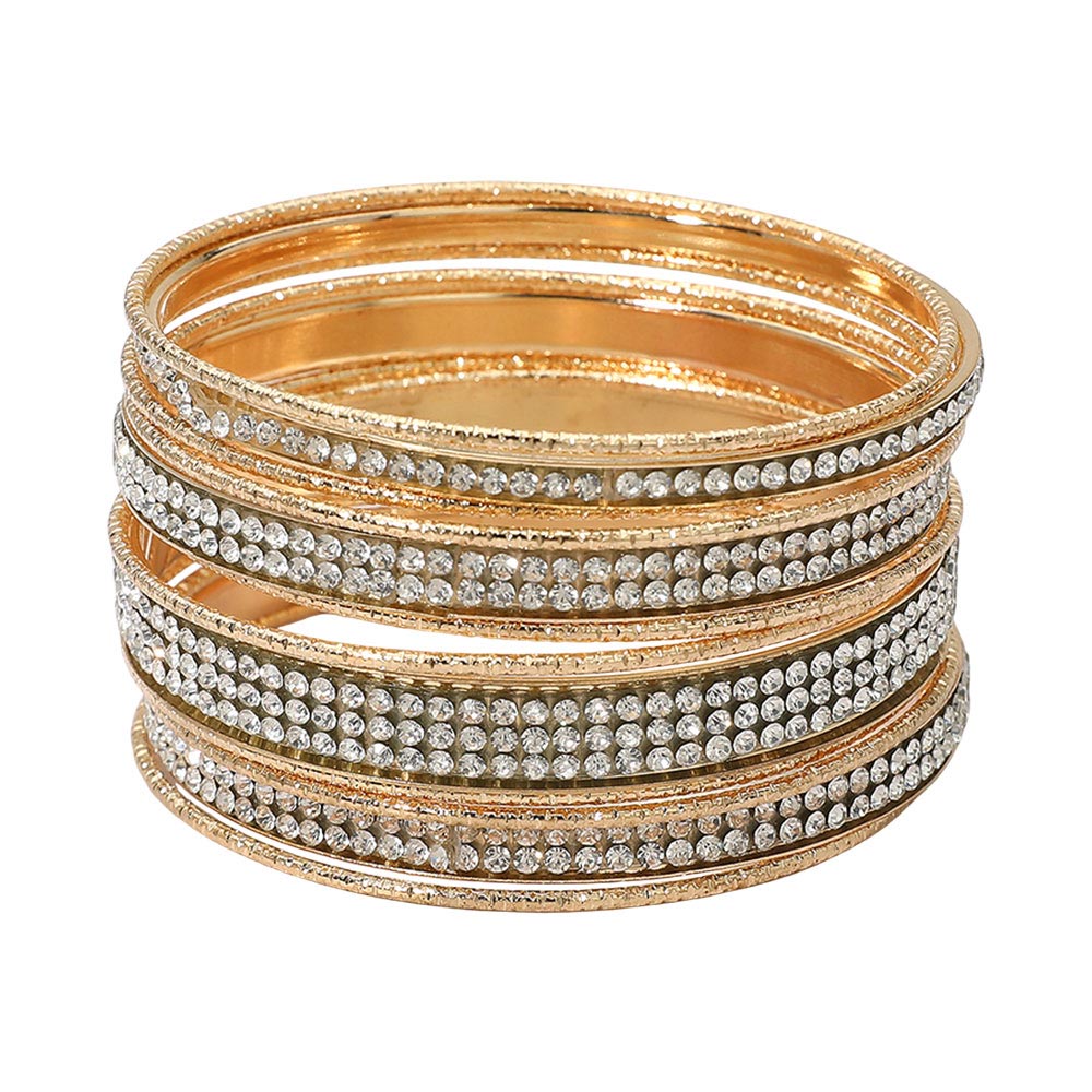 12PCS - Rhinestone Embellished Stackable Multi Layered Bangle Bracelets