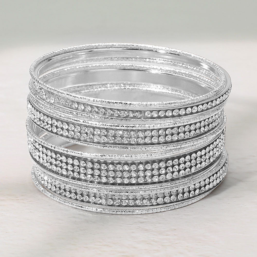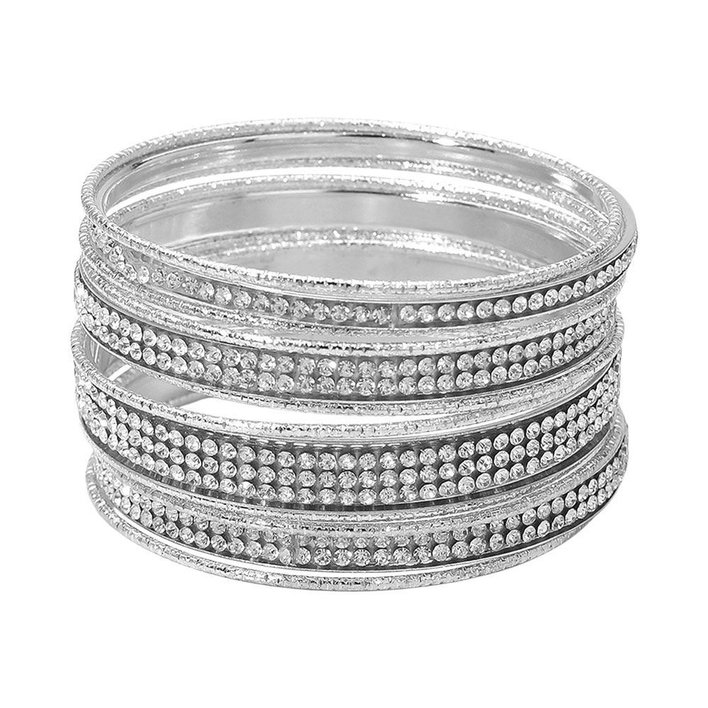 • Shine with elegance wearing this rhinestone embellished Bangle Set, designed with rows of sparkling accents and smooth metallic finishes. Perfect for layering or solo wear, this set adds a sophisticated shimmer to any outfit, making it ideal for festive events or evening occasions.