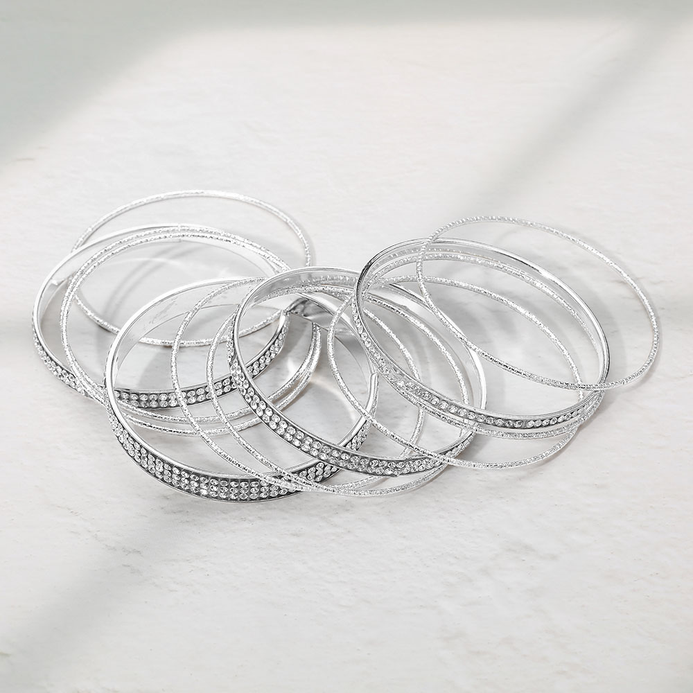 12PCS - Rhinestone Embellished Stackable Multi Layered Bangle Bracelets