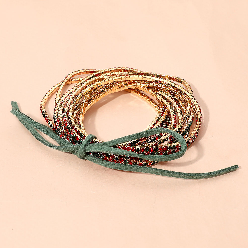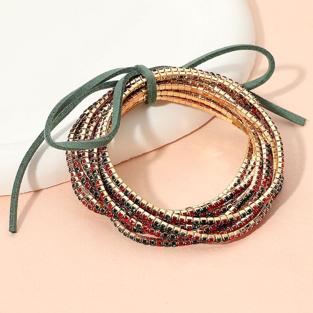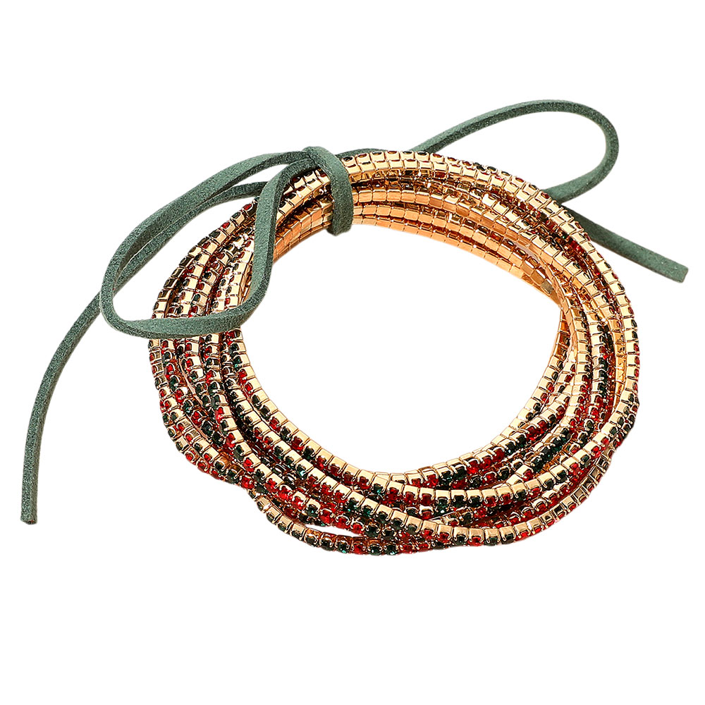 • Colorful wrap bracelet featuring multiple strands with shimmering bead accents and an adjustable tie closure. A playful accessory perfect for casual and festive looks.