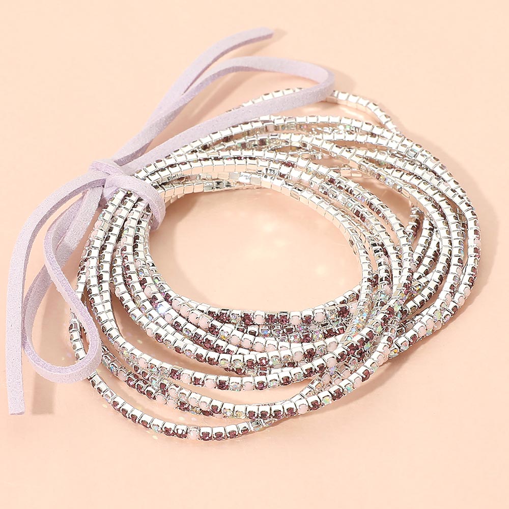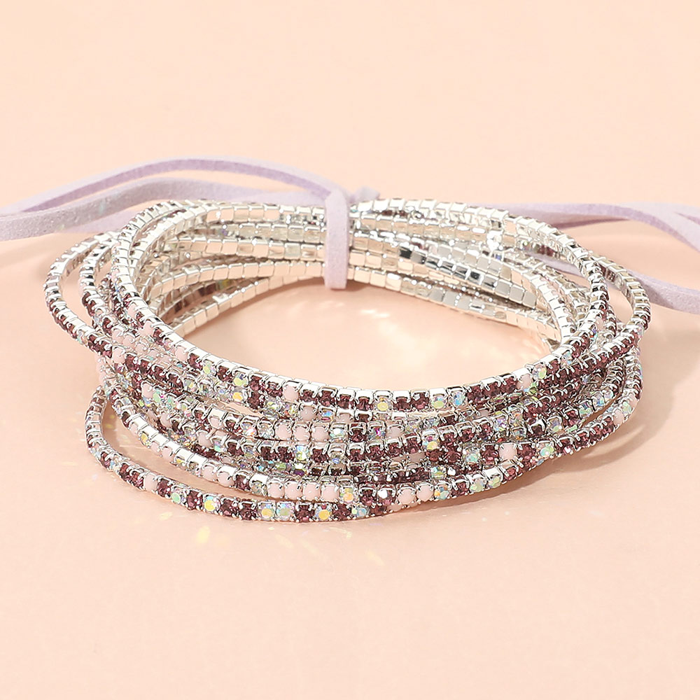 12PCS - Ribbon Colorful Rhinestone Layered Stretch Bracelets