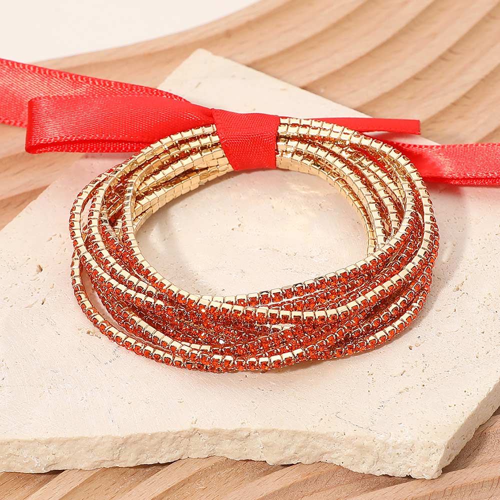 12PCS - Ribbon Slim Rhinestone Stretch Multi Layered Bracelet