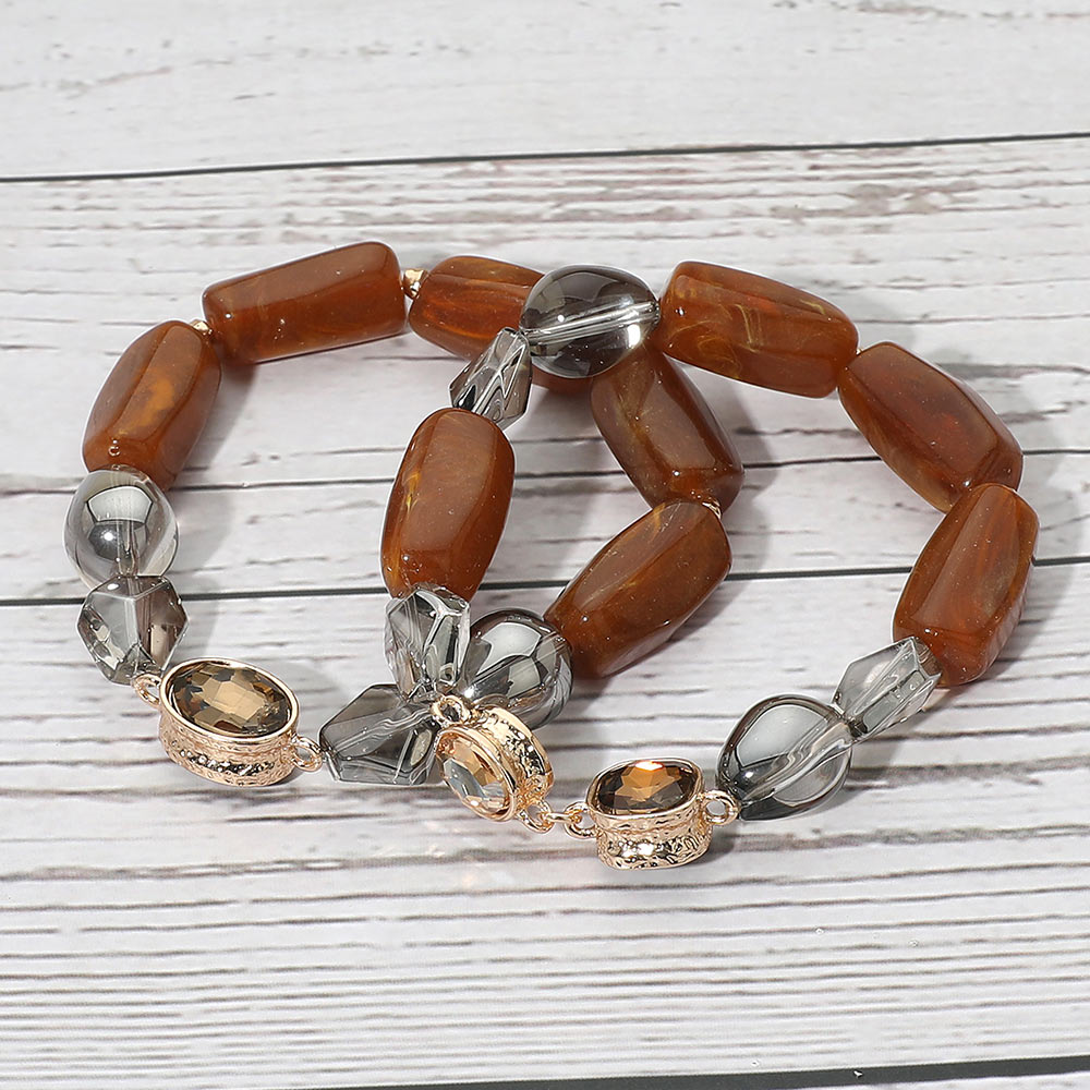 2PCS - Chunky Marbled Resin Pebble Faceted Stone Beaded Stretch Multi Layered Bracelets