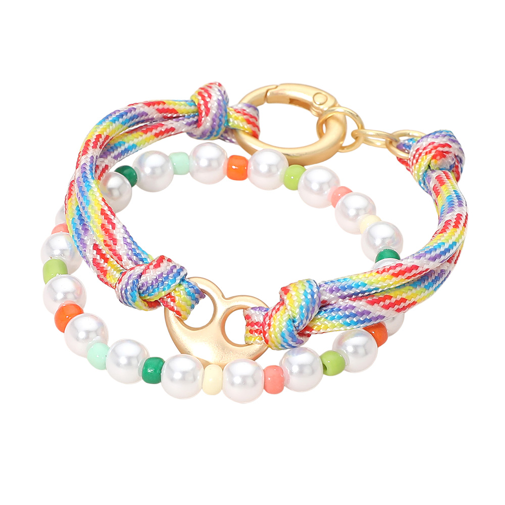 Details • Size 1 : 0.5" H, 7" + 0.75" L / Lobster Clasp Closure • Size 2 : 0.25" H / Stretchable • This layered bracelet features a playful braided cord paired with smooth round beads and a heart-inspired accent for a fun yet stylish look. Designed for easy stacking or standalone wear, it adds personality to everyday outfits, casual looks, gifting moments, and seasonal collections while offering a comfortable fit and eye-catching detail. • Lead and Nickel Compliant