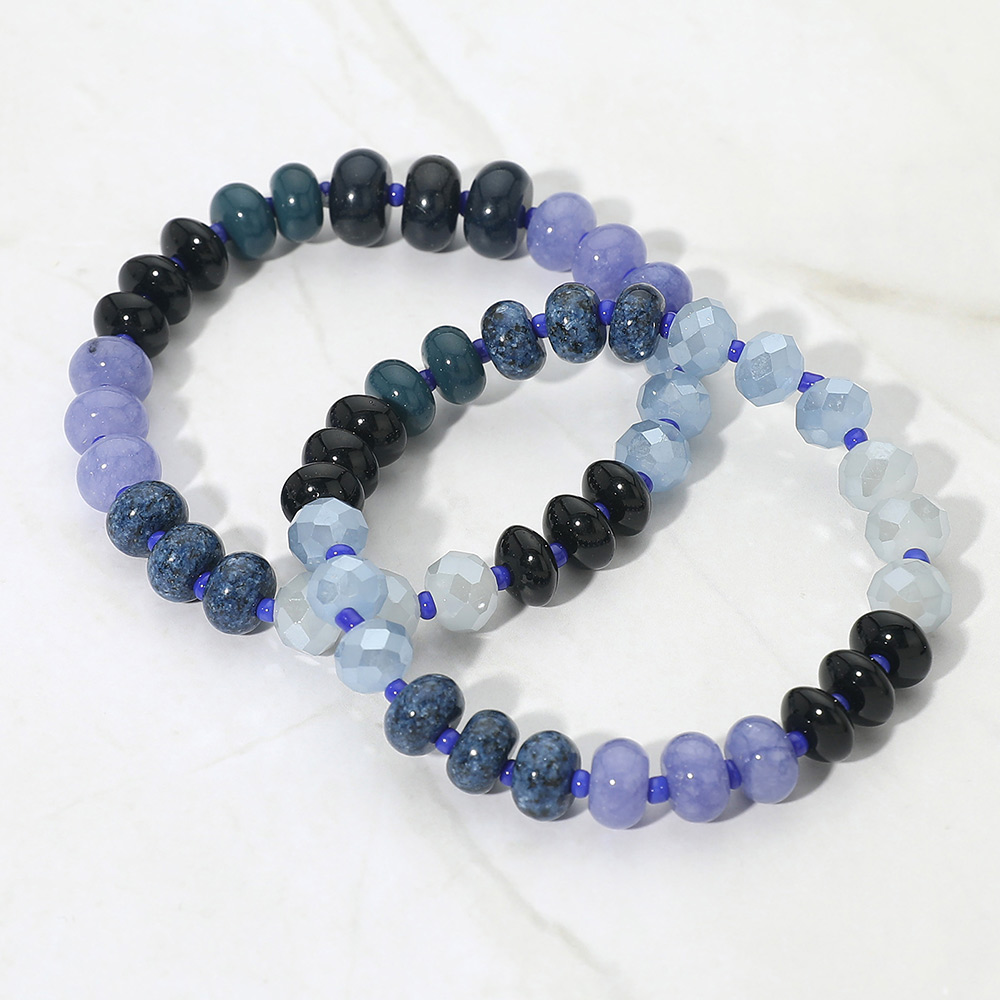 • This stretch bracelet set features smooth and faceted beads arranged in a balanced mix of shapes and finishes. The versatile design layers effortlessly for everyday style or adds a subtle statement to elevated looks, offering a refined and modern accessory option.