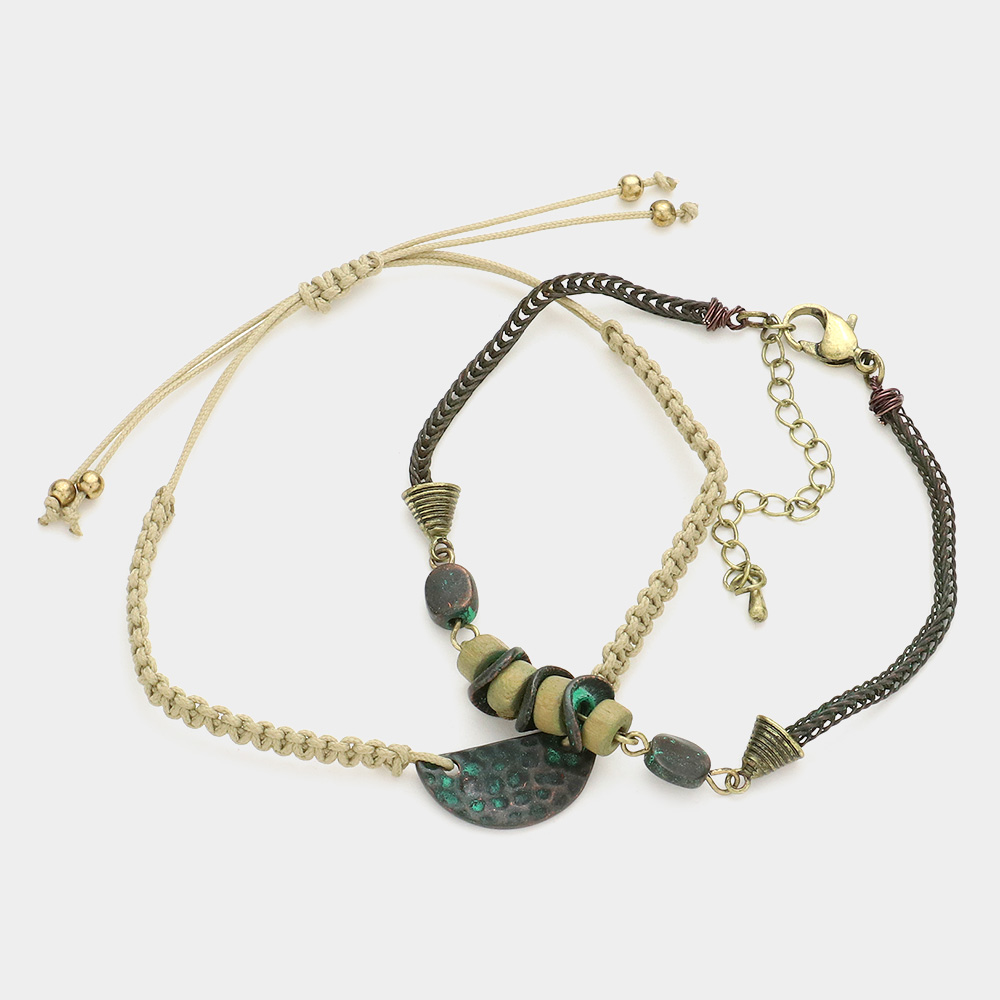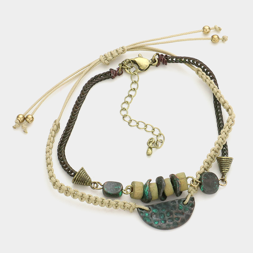 3PCS - Wood Ball Metal Beaded Stretch Bracelets