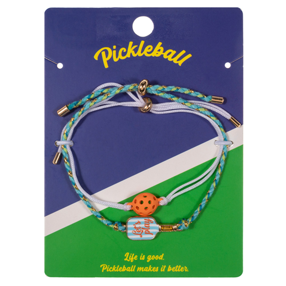 Details • Size : 0.9" H • Adjustable • This adjustable bracelet set features a playful pickleball theme with a sporty charm and coordinating cord design for everyday wear. Designed with flexible sizing for a comfortable fit, these bracelets are perfect for stacking, gifting, team events, or casual accessory collections celebrating an active and fun lifestyle. • Lead and Nickel Compliant