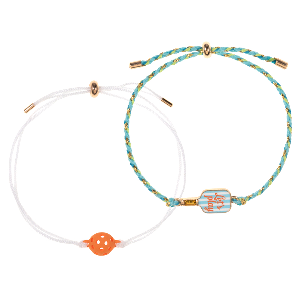 2PCS - LETS PLAY Pickleball Paddle Ball Accent Adjustable Cinch Pull Tie Bracelets