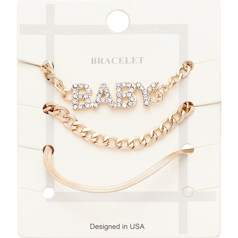 3PCS - BABY Rhinestone Embellished Metal Chain Bracelets